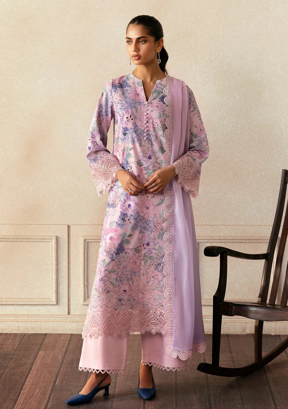 Outfit Type: Eastern Style: Kurta set Color Type: Zink Package Includes: 3 Piece Top ,...