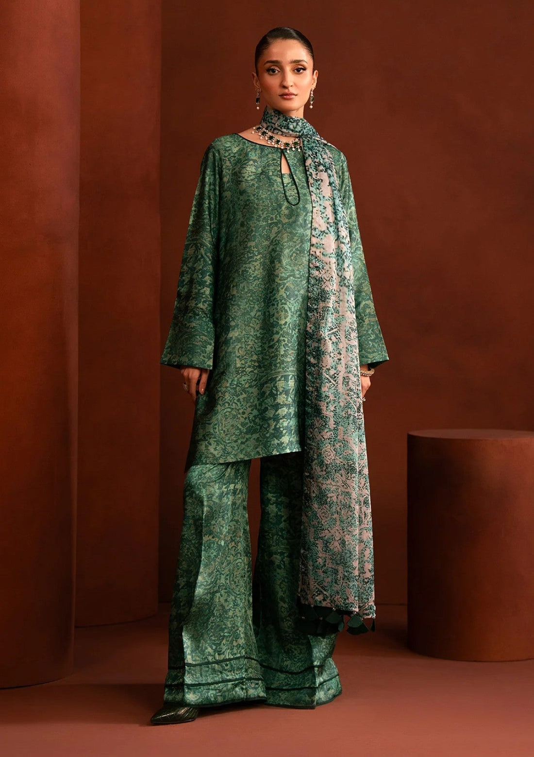 Outfit Type: Eastern Style: Kurta Set Color Type: Emerald Green Package Includes: 3 Piece Top...