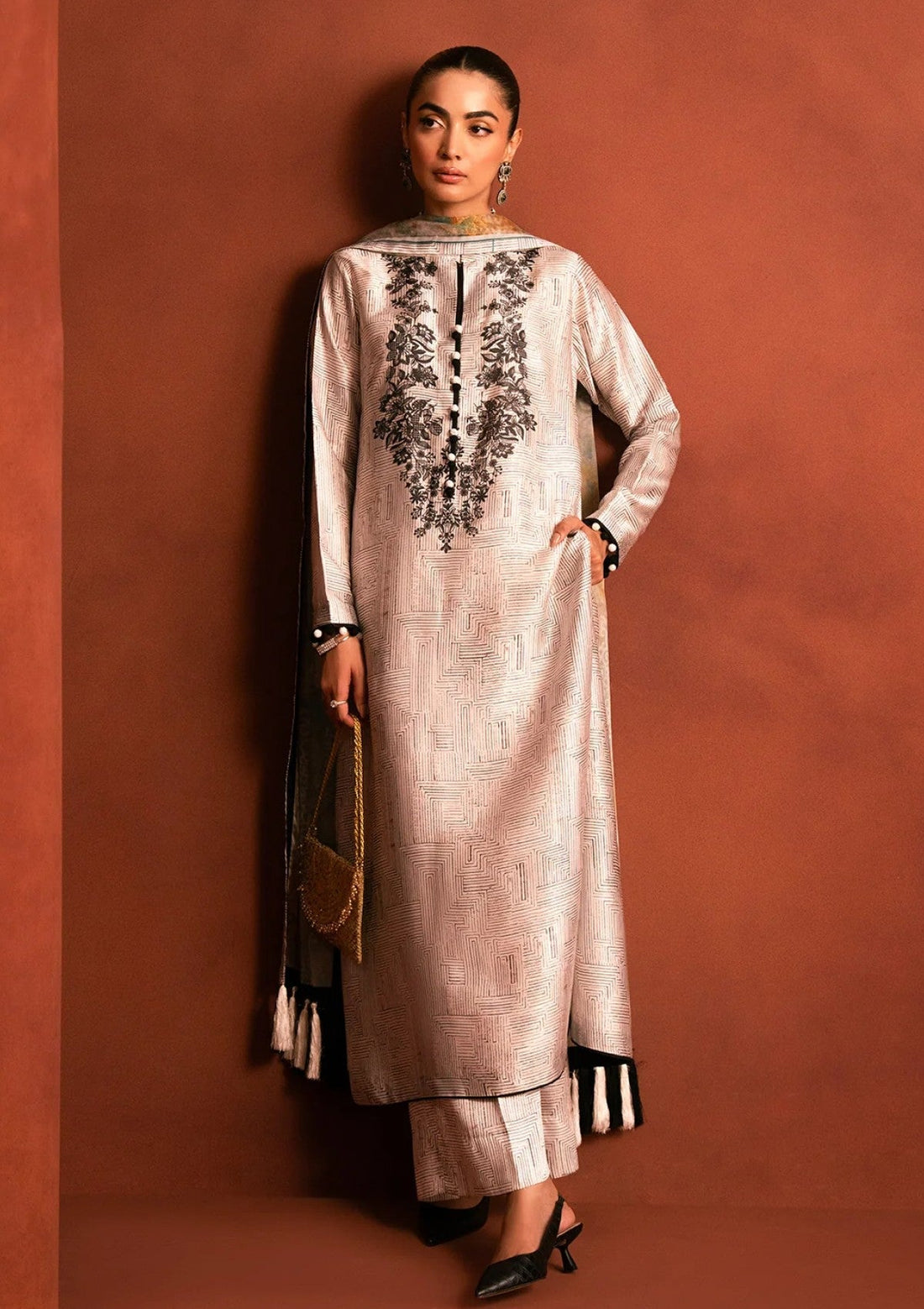Outfit Type: Eastern Style: Kurta Set Color Type: Metallic White Package Includes: 3 Piece Top...