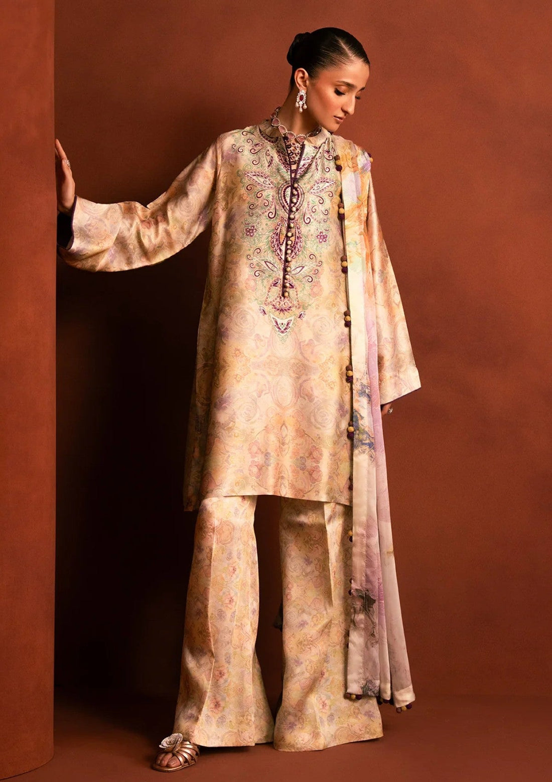 Outfit Type: Eastern Style: Long Shirt Color Type: Creamy Brown Package Includes: 3 Piece Top...