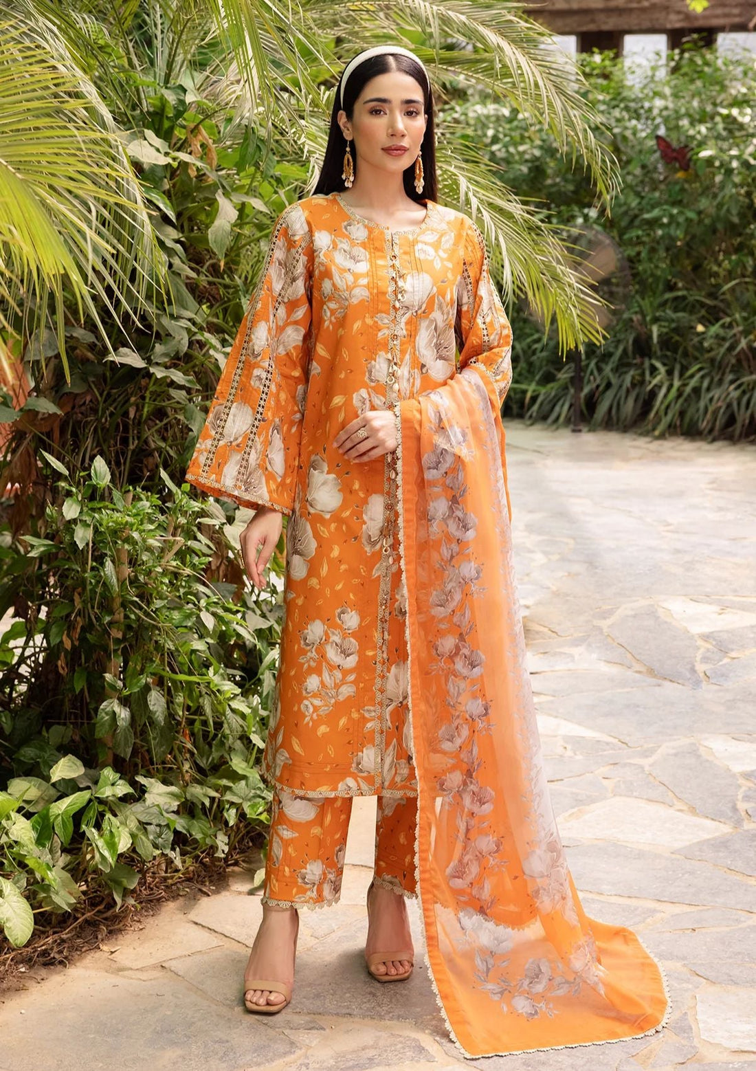 Outfit Type: Eastern Style: Long Shirt Color Type: Orange Package Includes: 3 Piece Top ,...