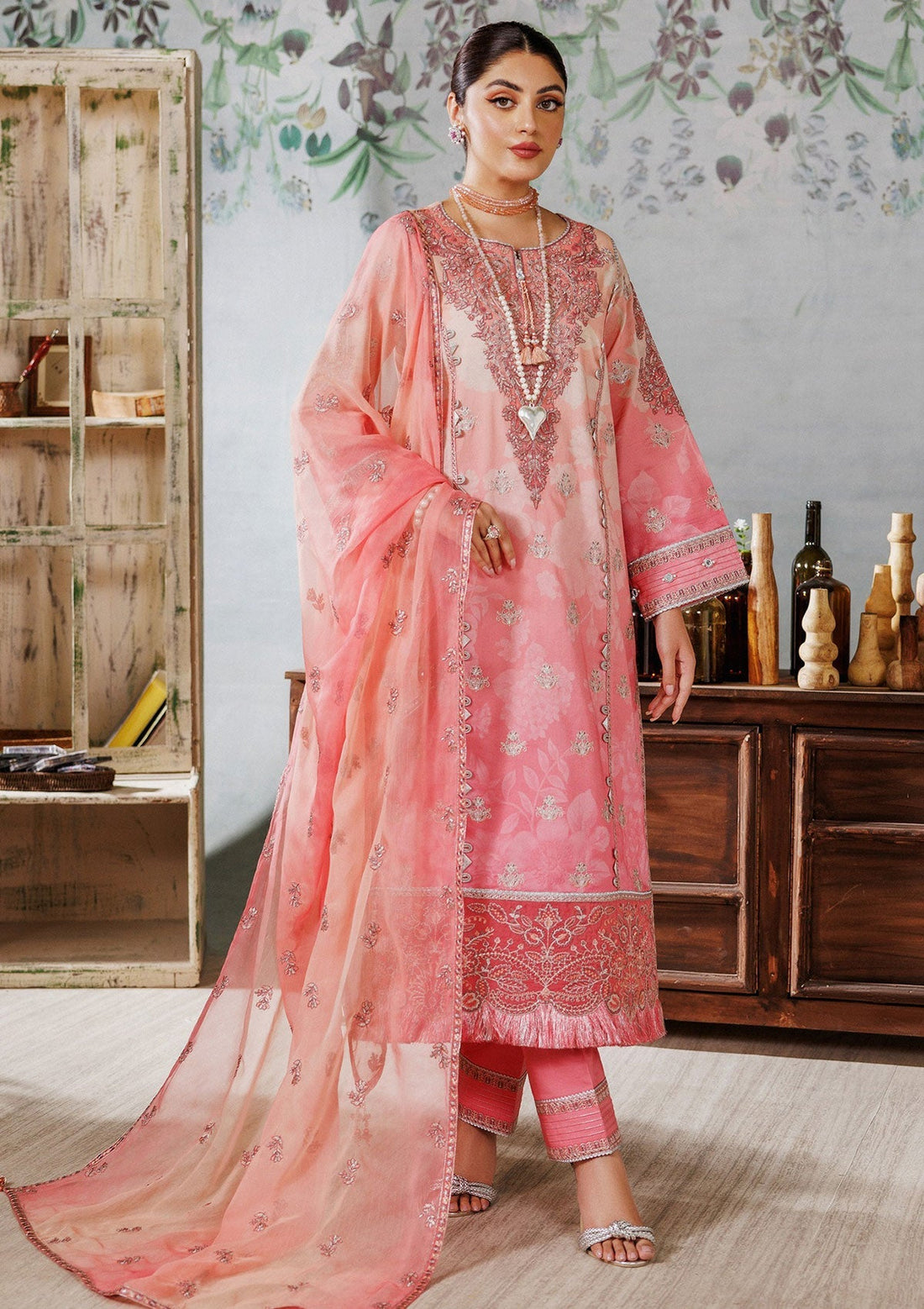 Outfit Type: Eastern Style: Long Shirt Color Type: Pink Package Includes: 3 Piece Top ,...