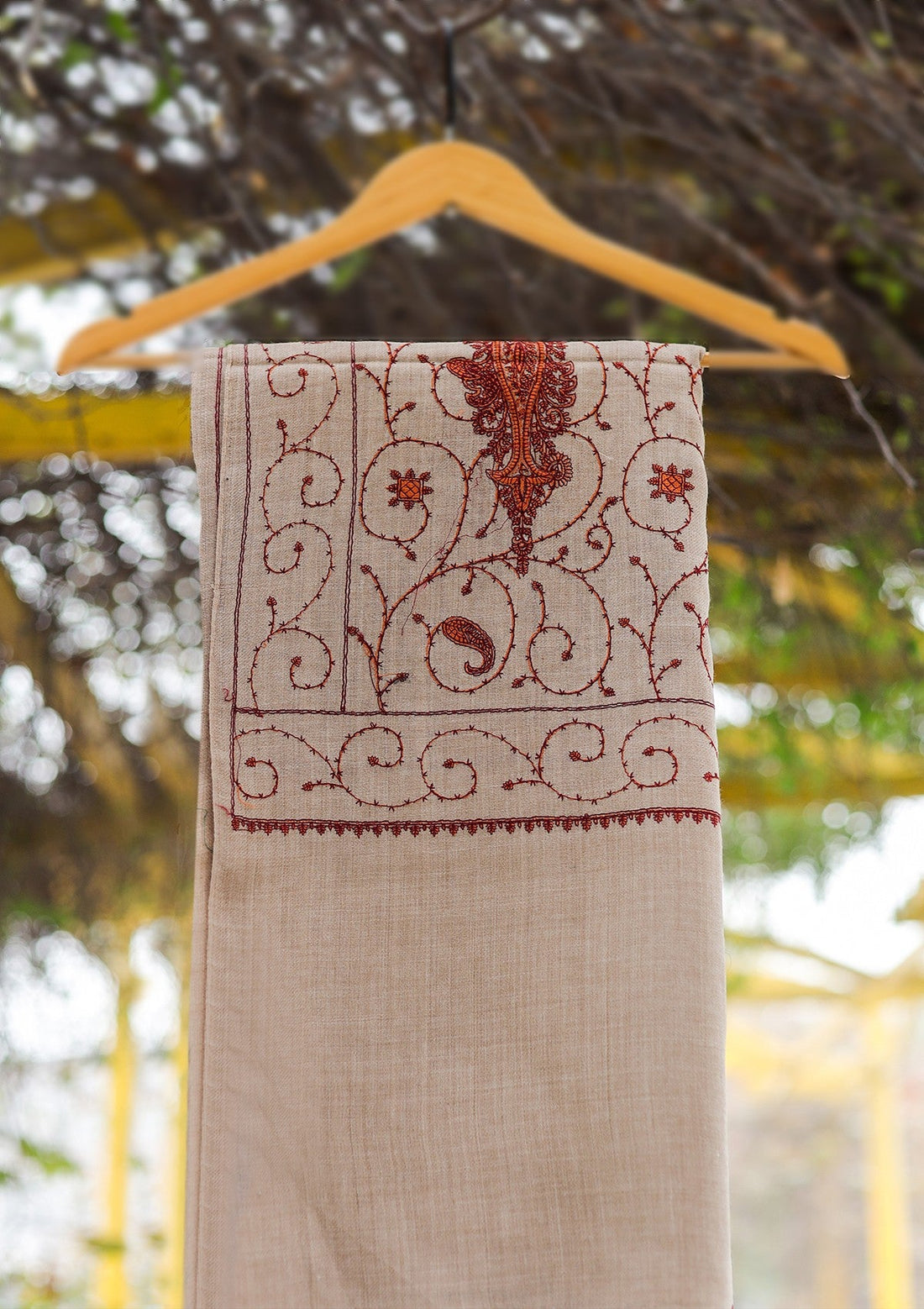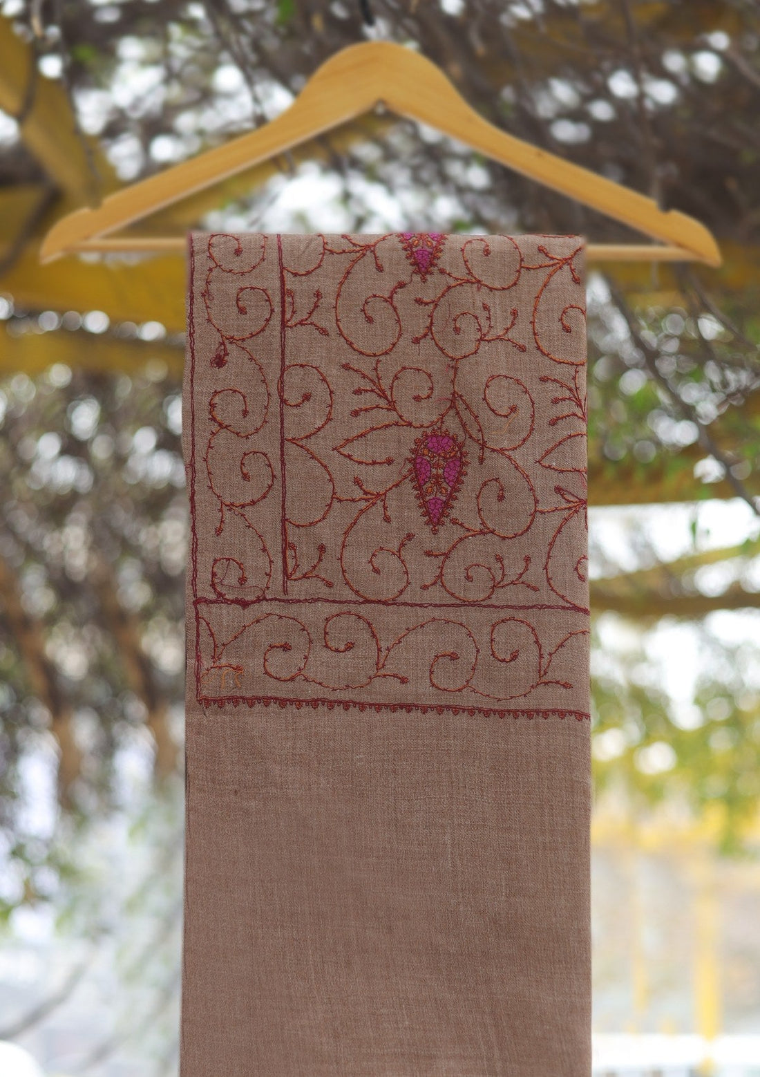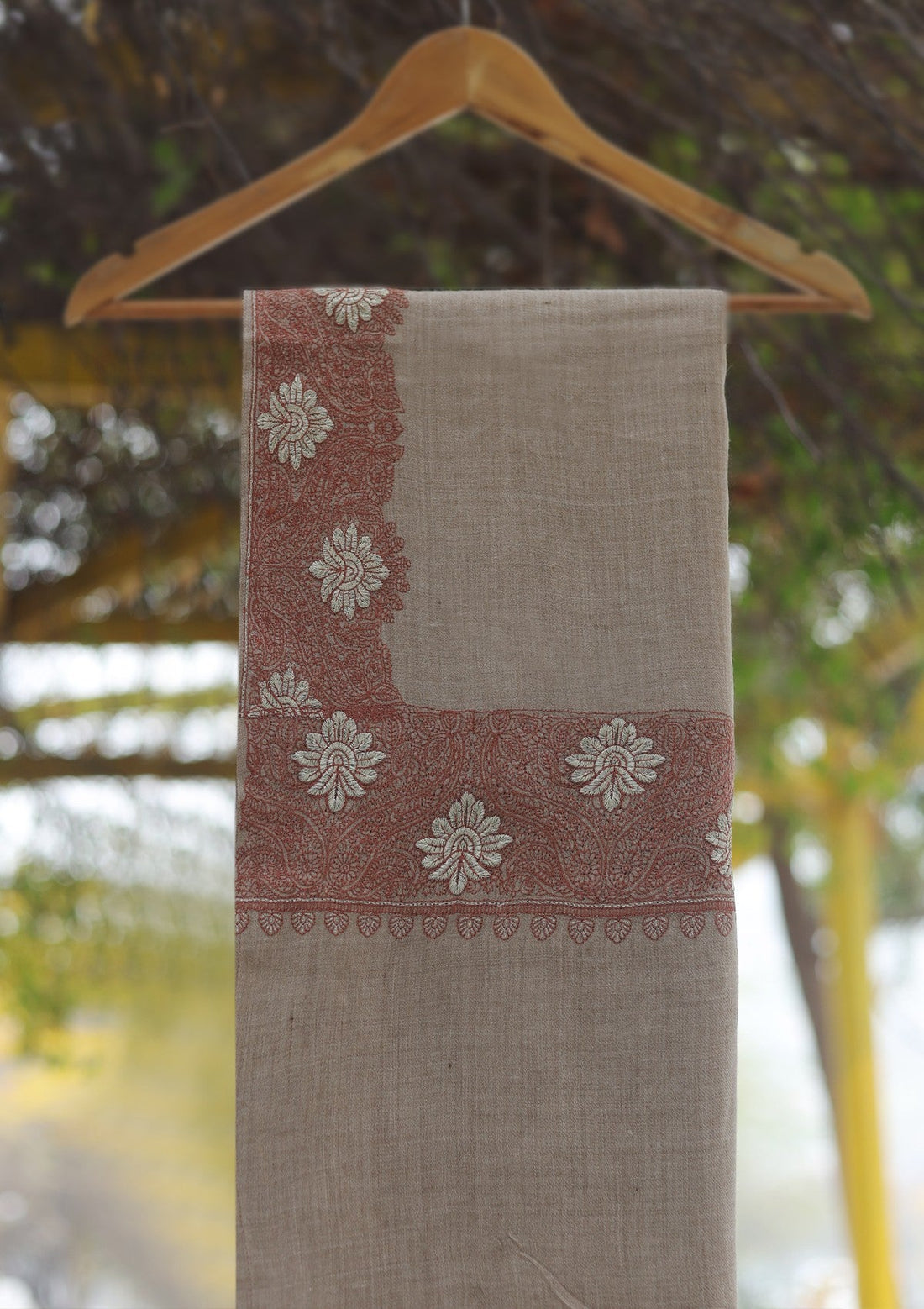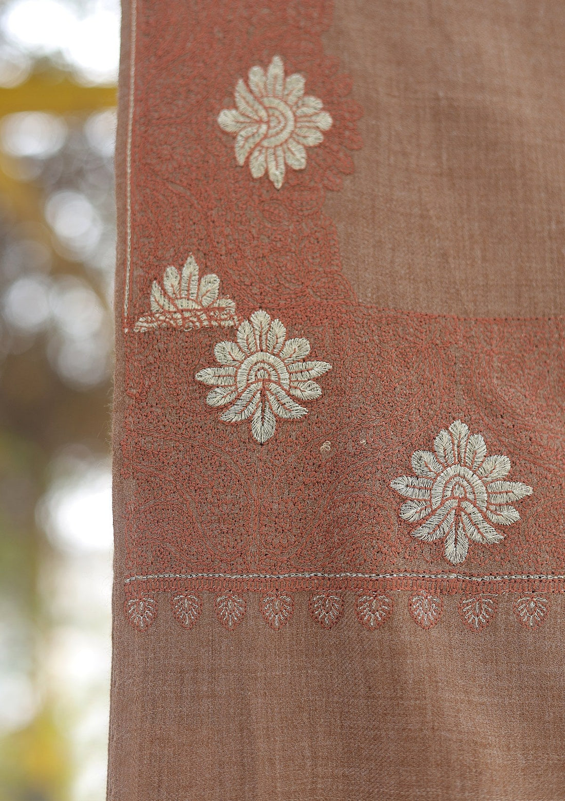 Wool Emboridered Shawl D - 03 - Brown