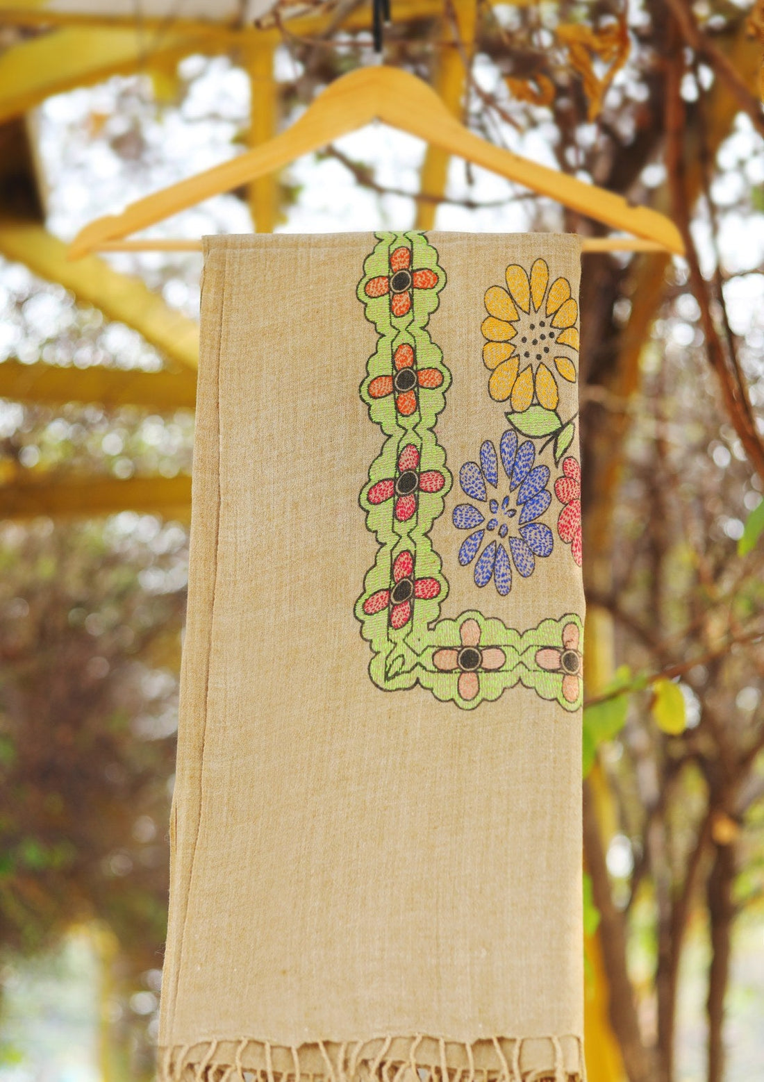 Wool Needle Work Shawl D - 44 - D Mehendi