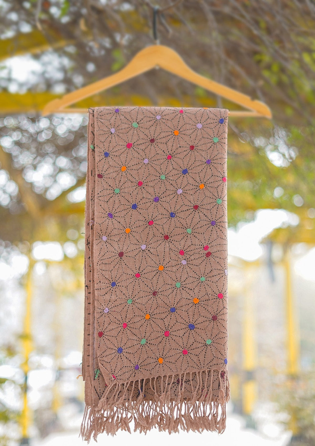 Wool Needle Work Shawl D - 40 - Fawn