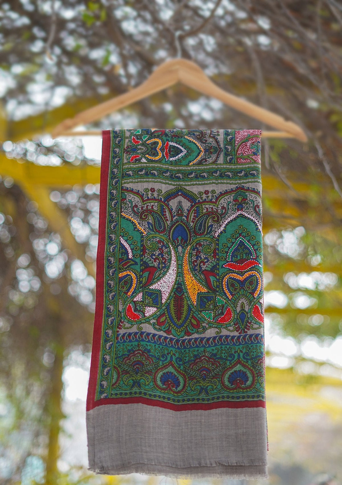 Wool Needle Work Shawl D - 46 - B Green