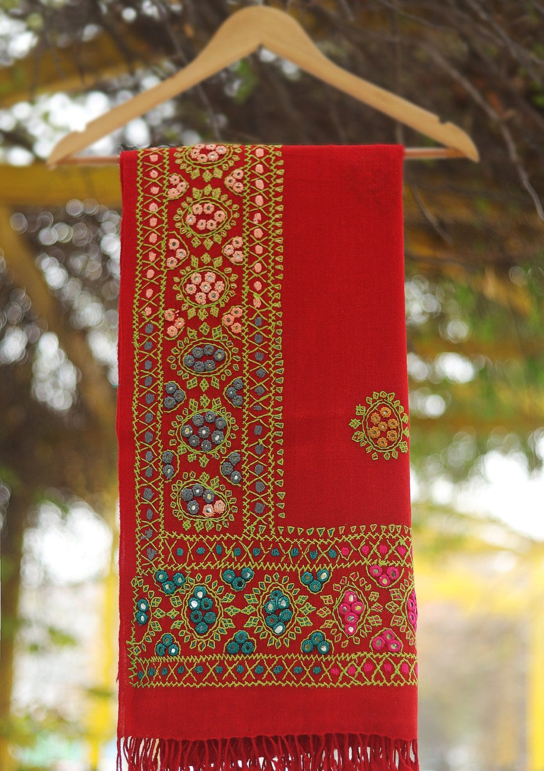 Outfit Type: Shawl Color Type: RED Package Includes: 1 piece: Shawl Fabric: Wool Work Technique:...