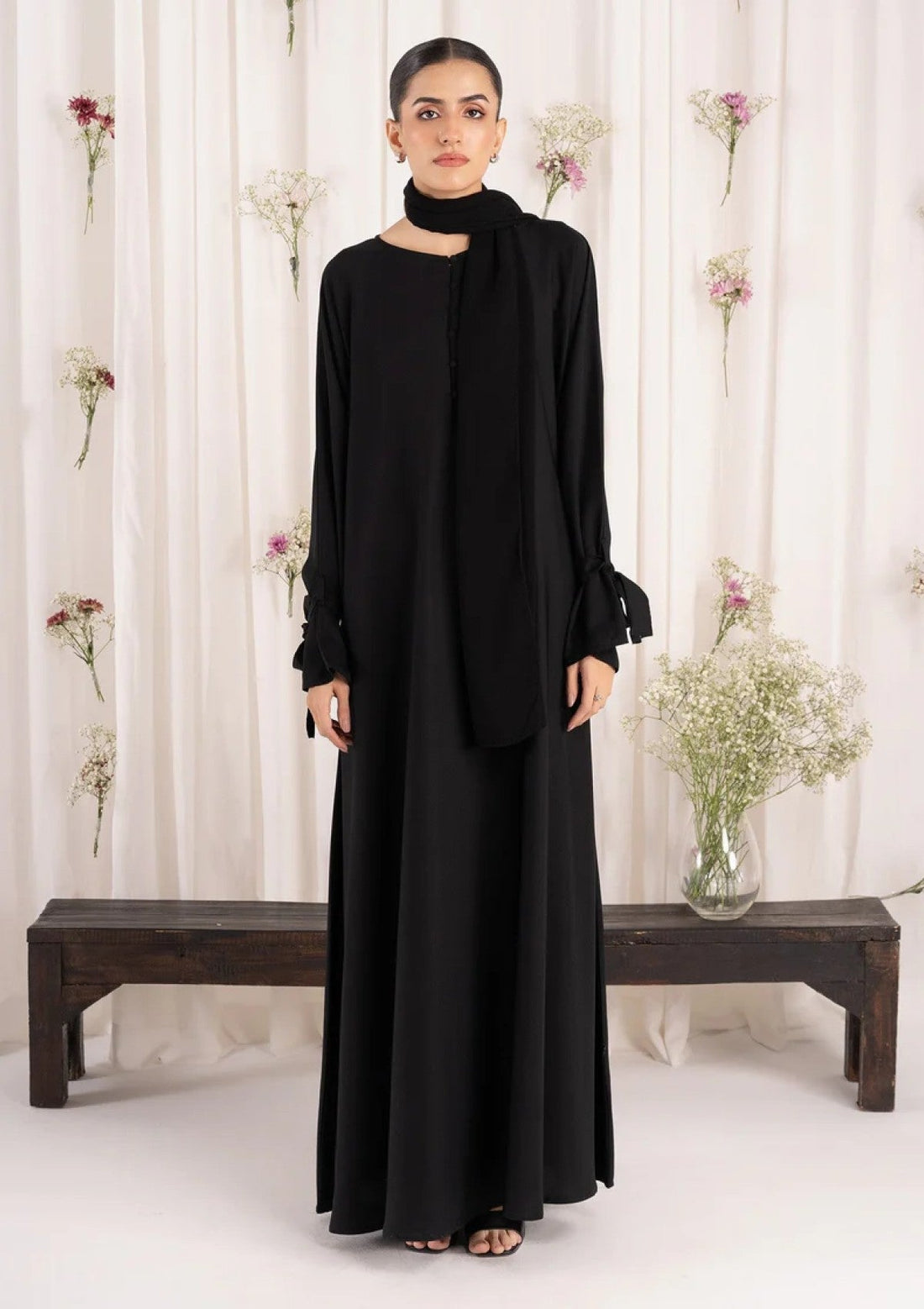 Outfit Type: Eastern Style: Abaya Color Type: Black Package Includes: 2 Piece Top & Dupatta...