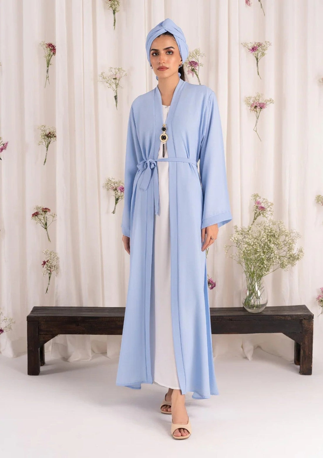 Outfit Type: Eastern Style: Abaya Color Type: Sky Blue Package Includes: 2 Piece Top &...