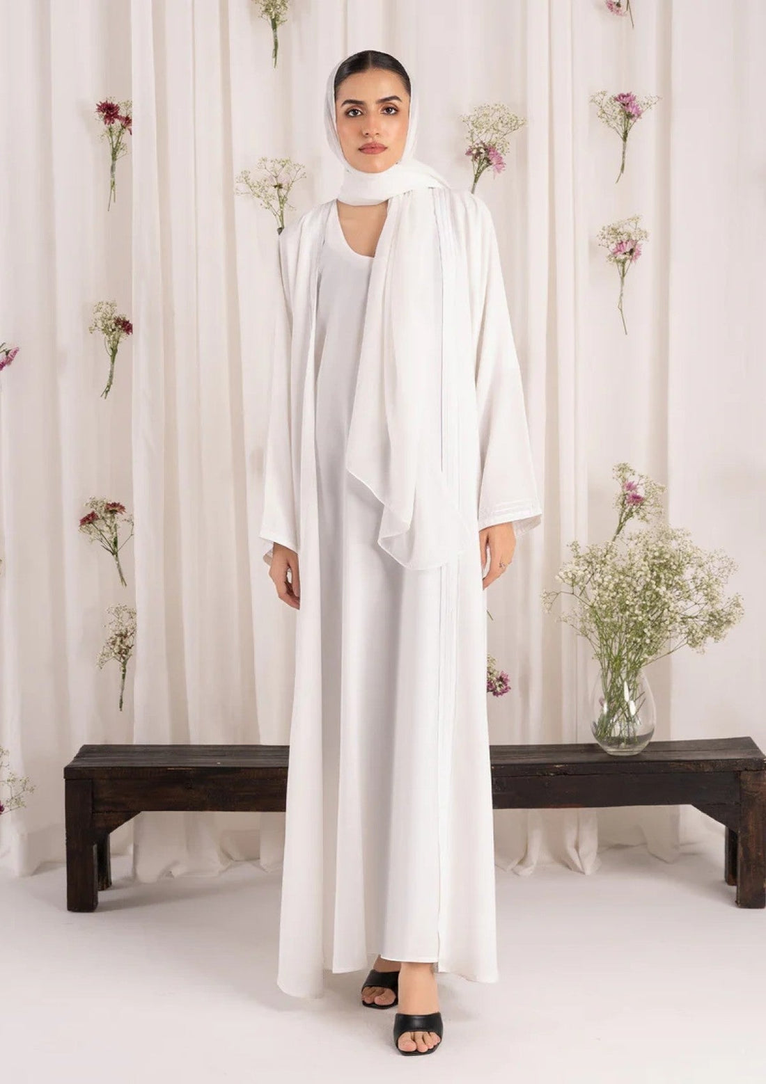 Outfit Type: Eastern Style: Abaya Color Type: White Package Includes: 2 Piece Top & Dupatta...