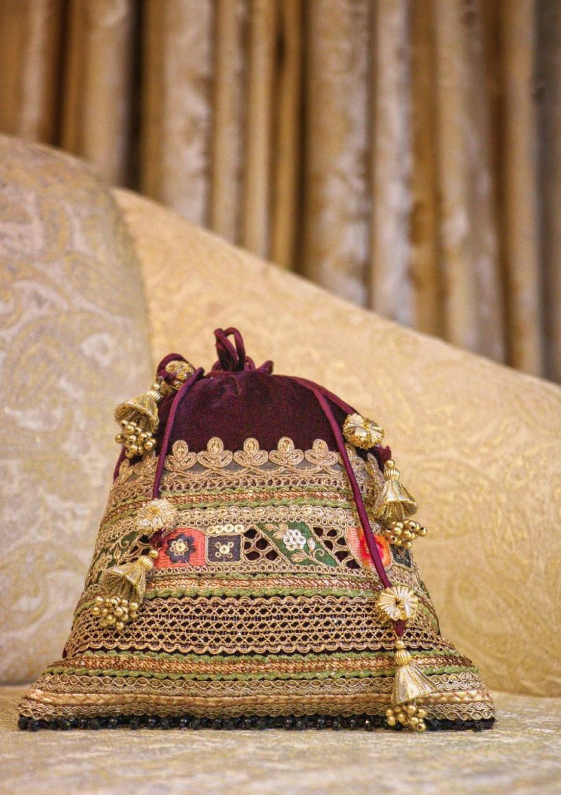 Outfit Type: Eastern Style: Pouch Color Type: Burgundy Package Includes: 1 Piece, Only Potli Fabric:...