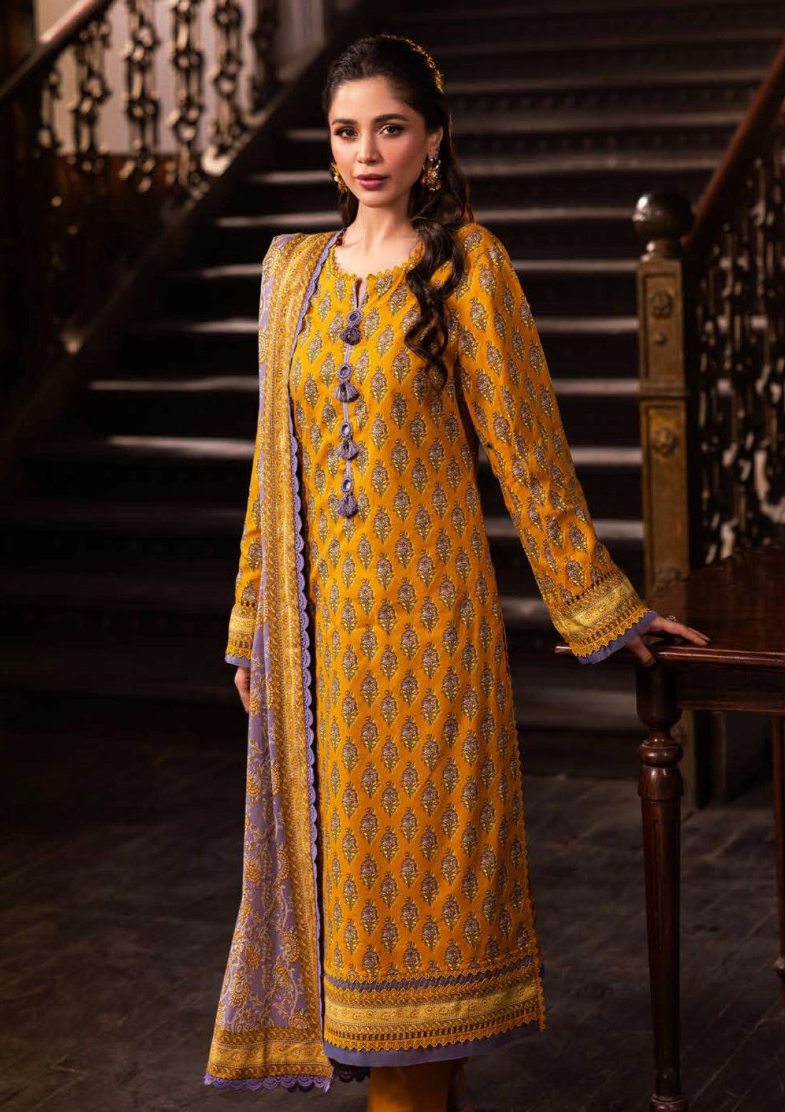 Outfit Type: Eastern Style: Long Shirt Color Type: Mustard Package Includes: 3 Piece Top ,...