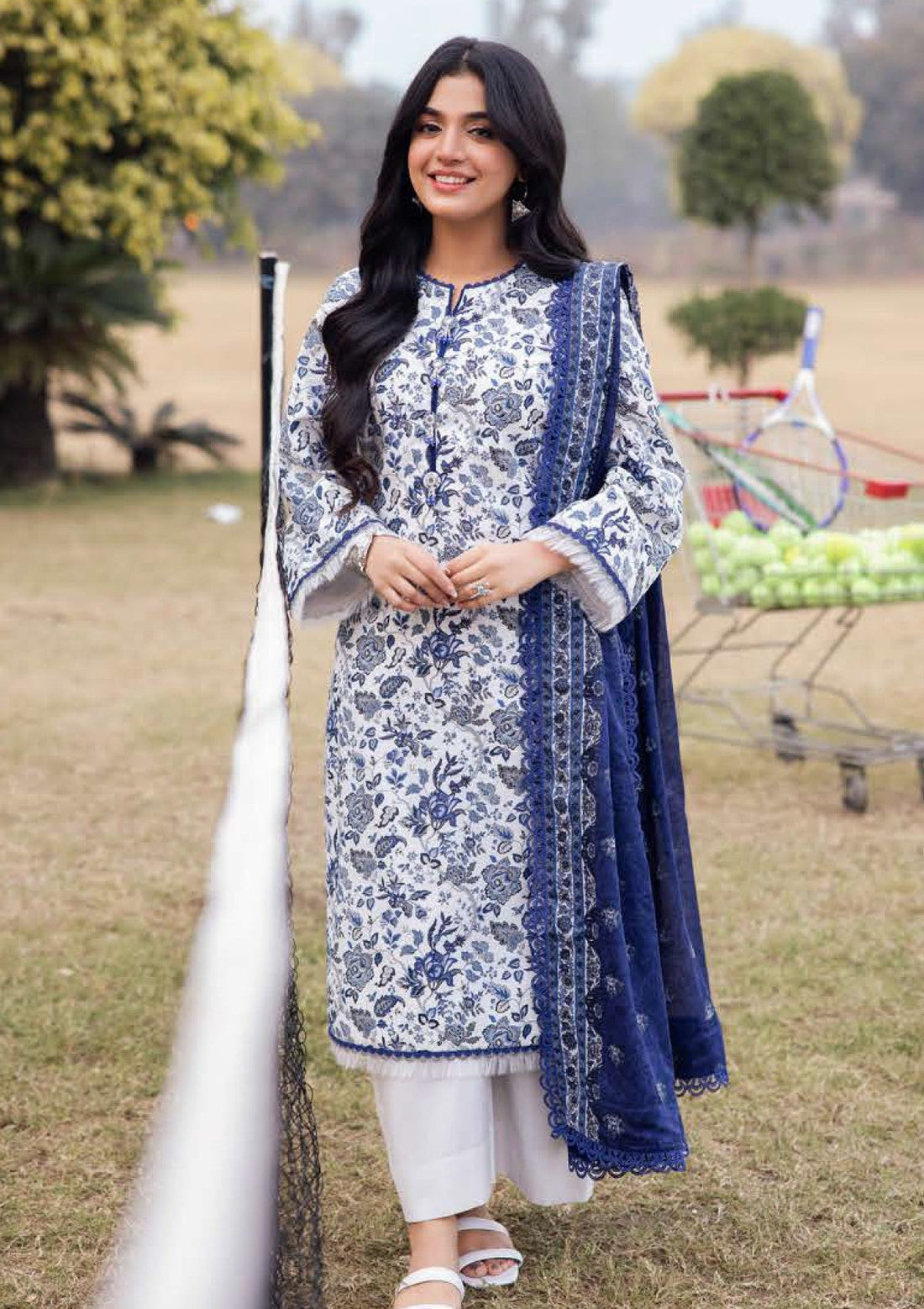 Outfit Type: Eastern Style: Long Shirt Color Type: White & Blue Package Includes: 3 Piece...