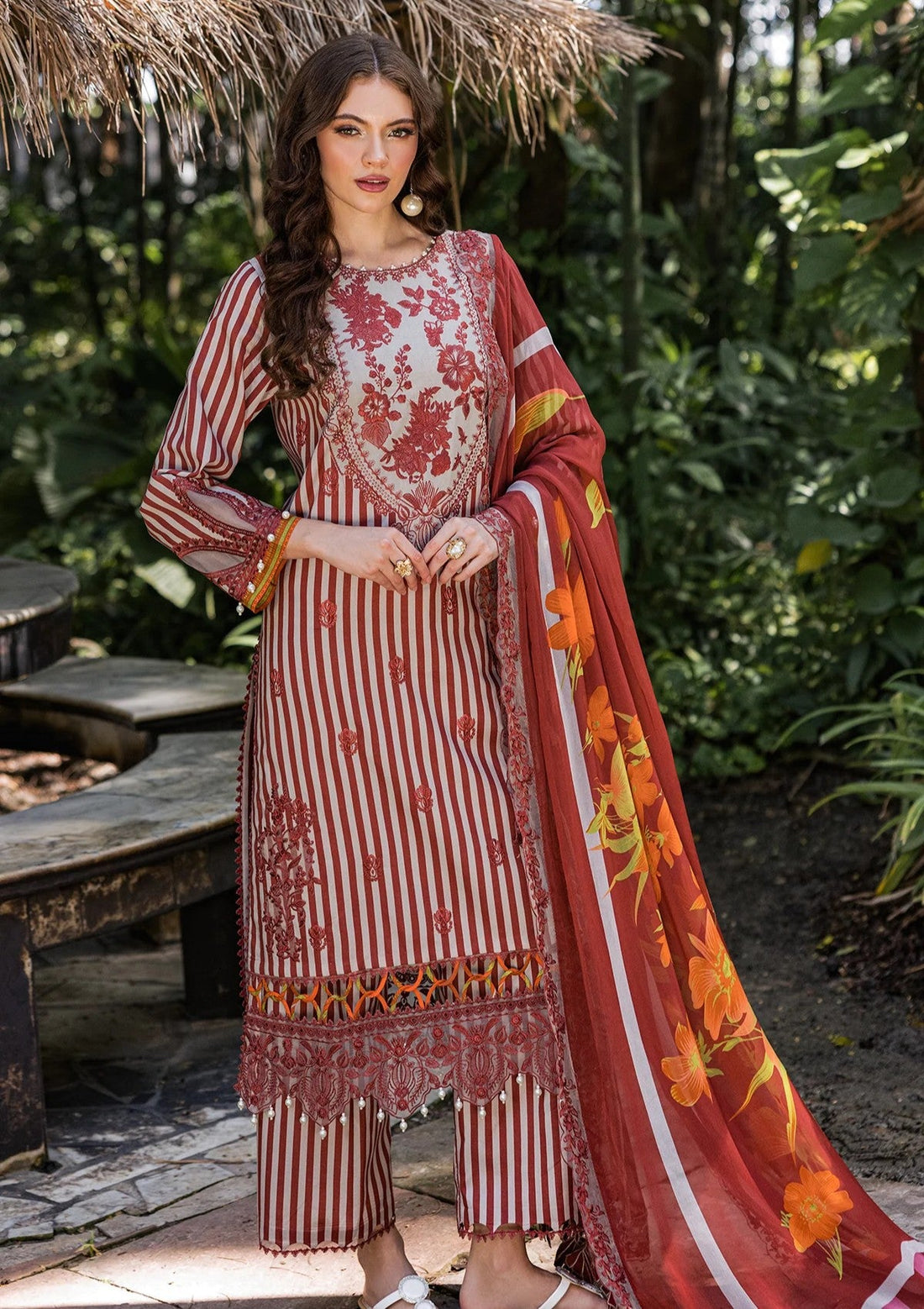 Outfit Type: Eastern Style: Long Shirt Color Type: Maroon Package Includes: 3 Piece Top ,...