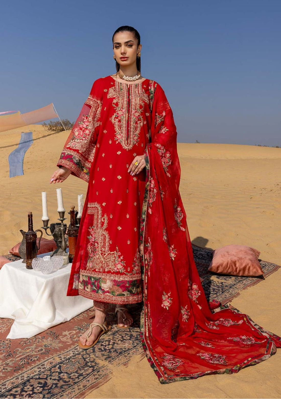 Outfit Type: Eastern Style: Long Shirt Color Type: Red Package Includes: 3 Piece Top ,...