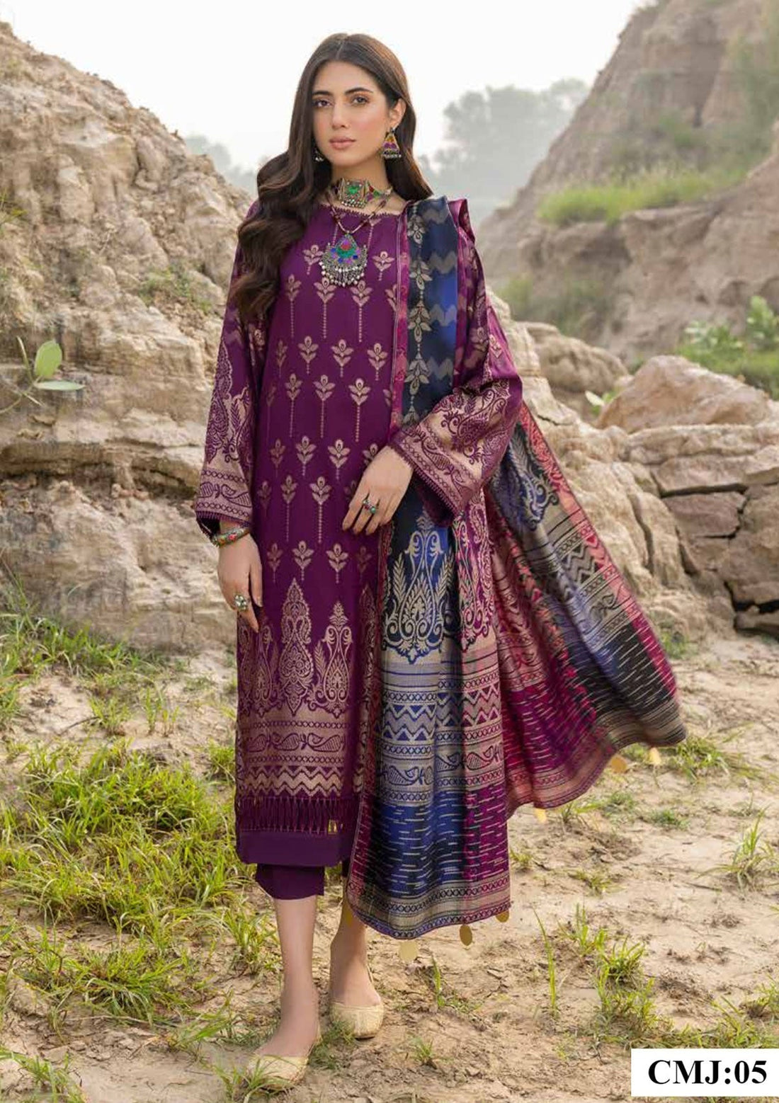 Description: Embroidered Marina jacquard Shirt Marina Jacquard Shawl Dyed Trouser Note:Please note that the color...