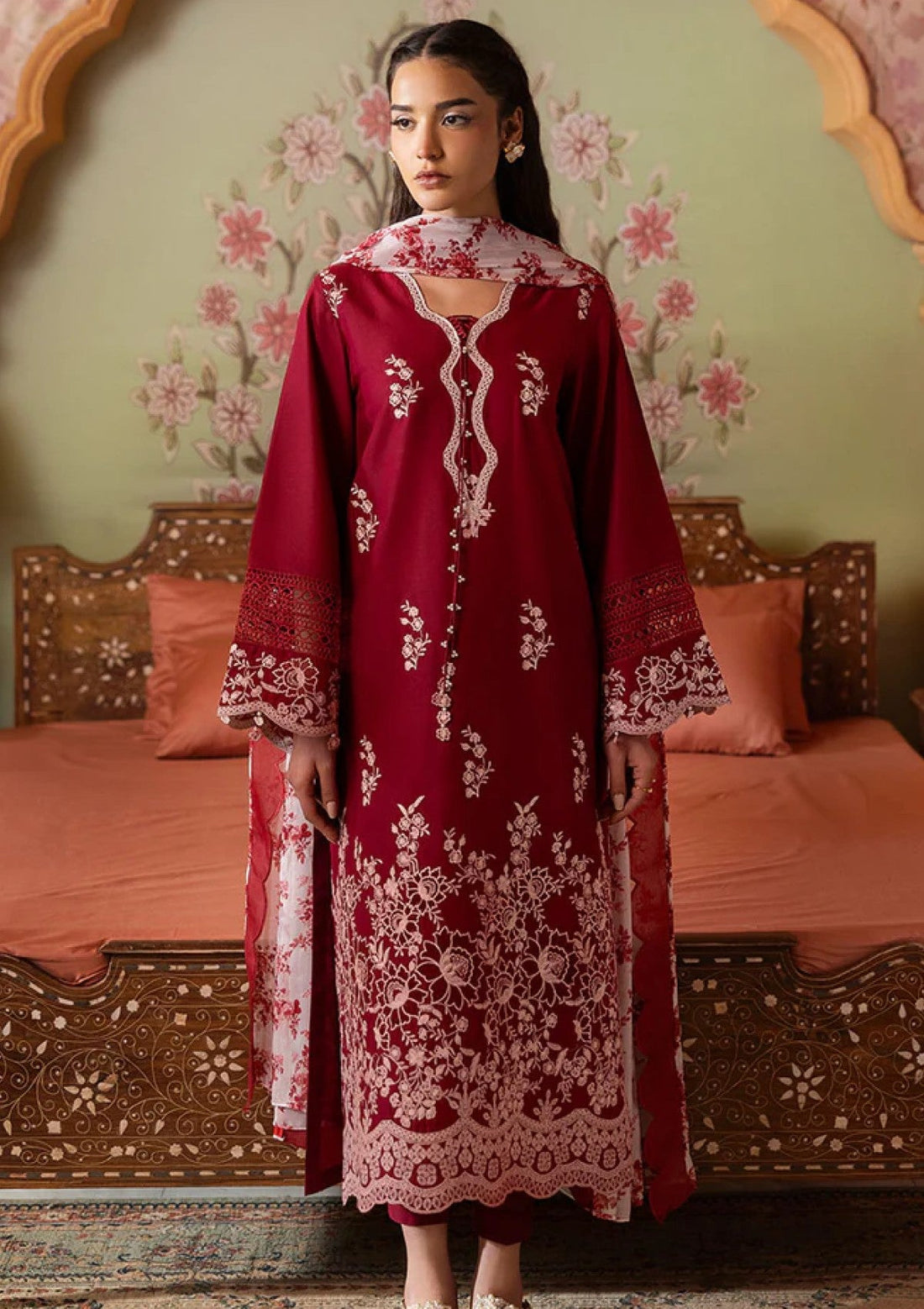 Lawn - Cross Stitch - Unstitched Premium 25 - CRIMSON RED