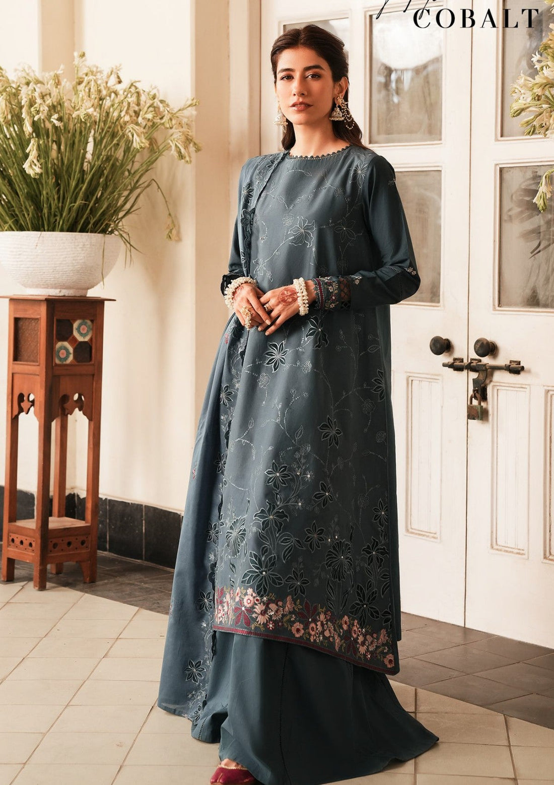 Lawn - Cross Stitch - Eid Unstitched 25 - AQUA COBALT