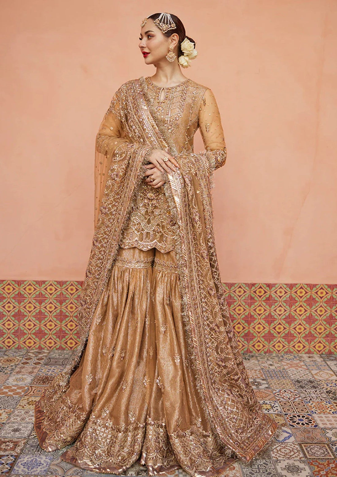 Outfit Type: Eastern Style: Gharara Color Type: Golden Brown Package Includes: 3 Piece Top ,...