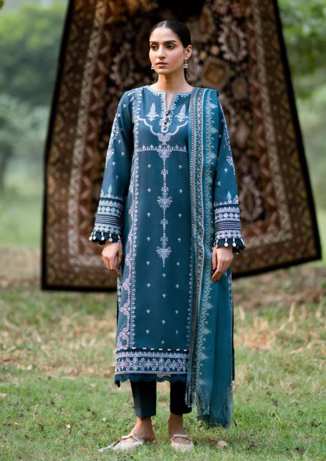 Outfit Type: Eastern Style: Long Shirt Color Type: Blue Package Includes: 3 Piece Top ,...