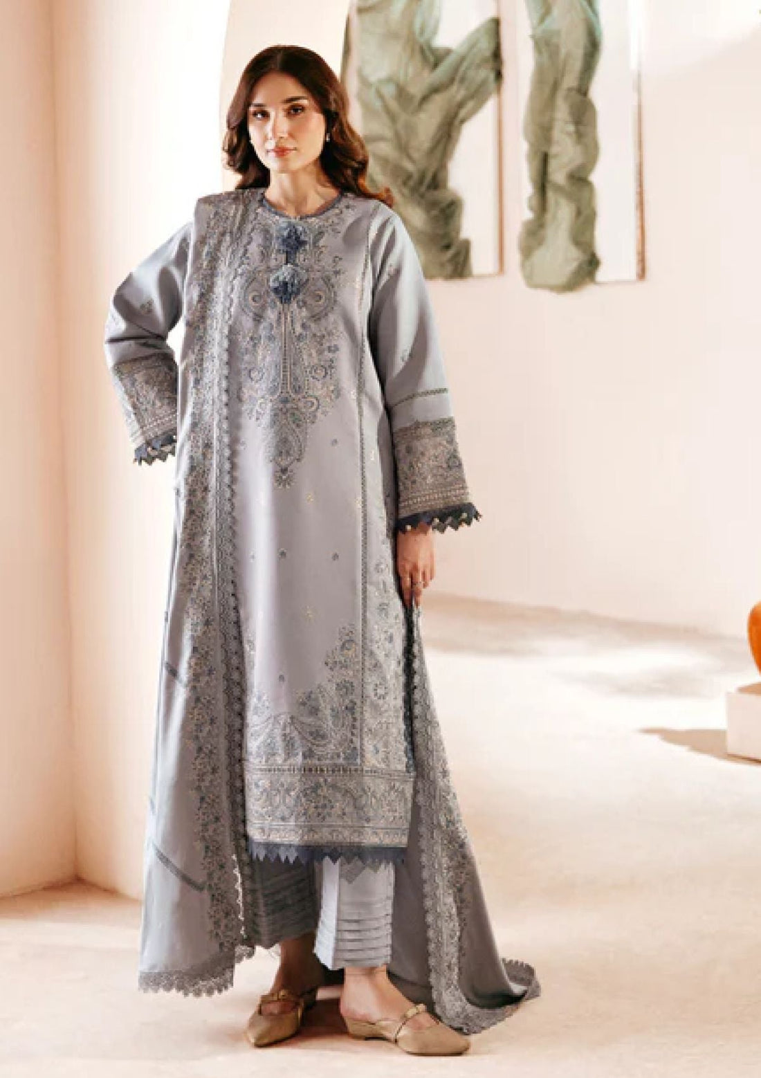 Outfit Type: Eastern Style: Long Shirt Color Type: Grey Package Includes: 3 Piece Top ,...