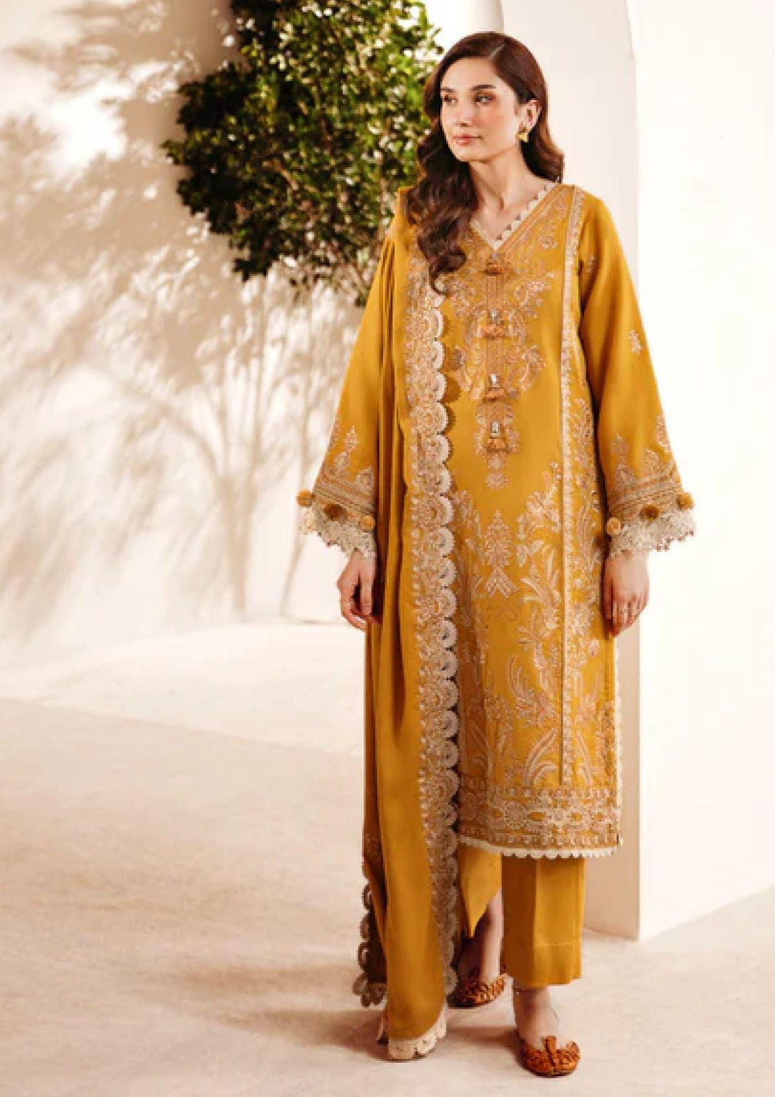 Outfit Type: Eastern Style: Long Shirt Color Type: Mustard Package Includes: 3 Piece Top ,...