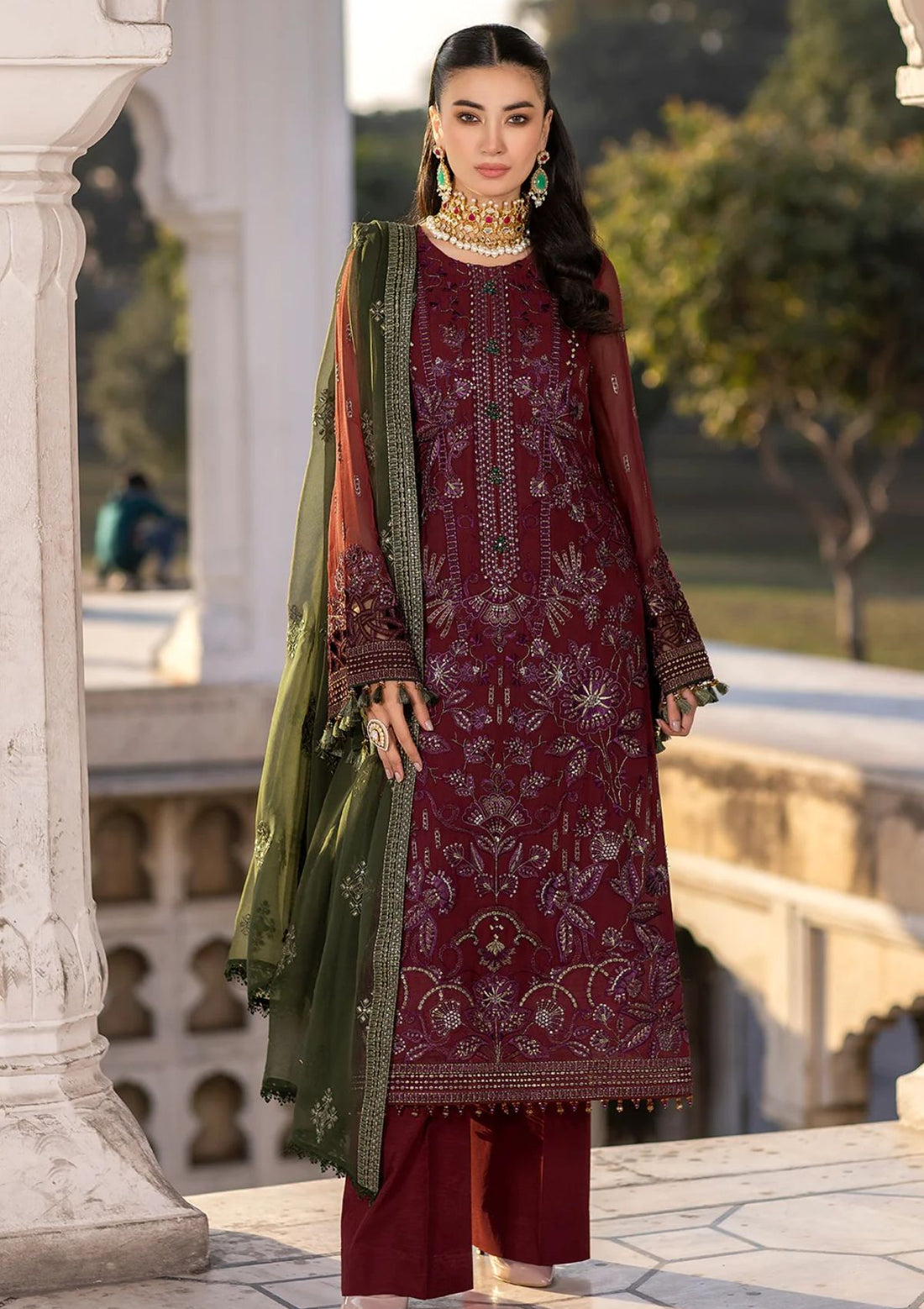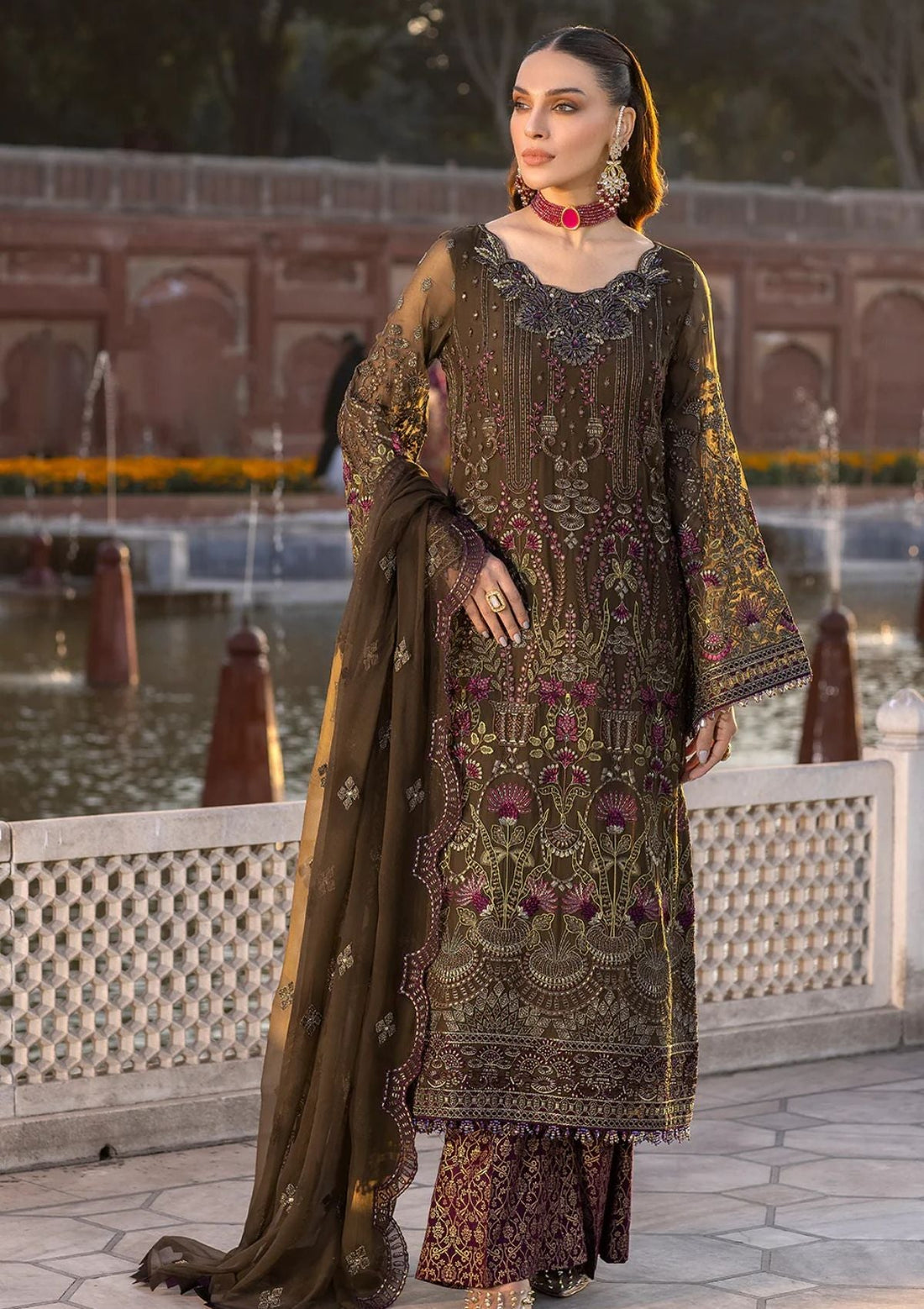 Outfit Type: Eastern Style: Long Shirt Color Type: Maroon Package Includes: 3 Piece Top ,...
