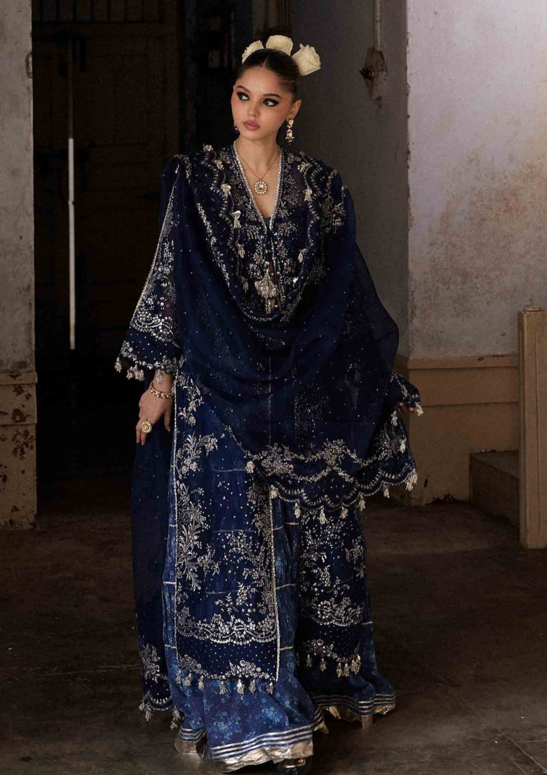 Outfit Type: Eastern Style: Gown Color Type: Navy Blue Package Includes: 3 Piece Top ,...
