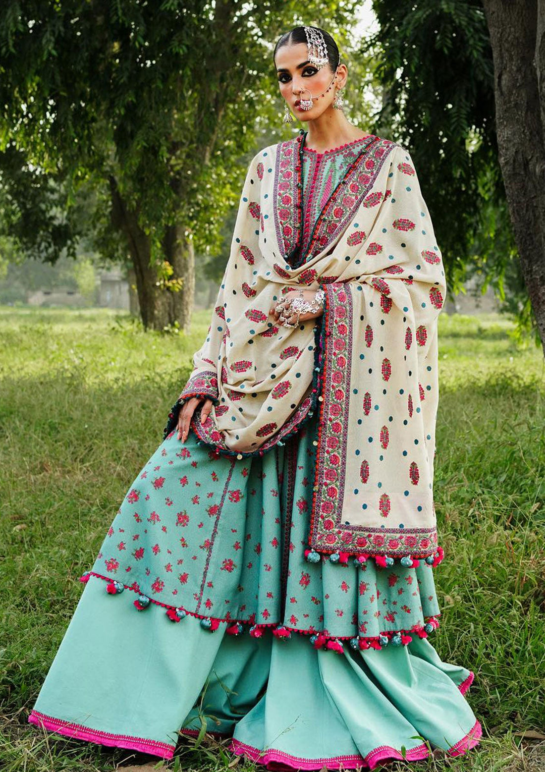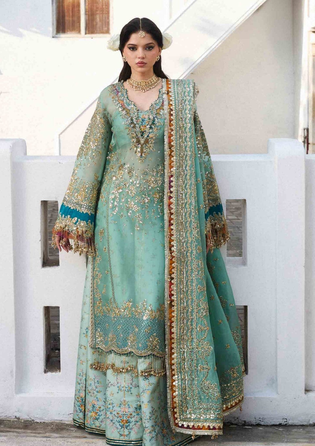 Outfit Type: Eastern Style: Frock Color Type: Ferozi Package Includes: 3 Piece Top, Bottom &...
