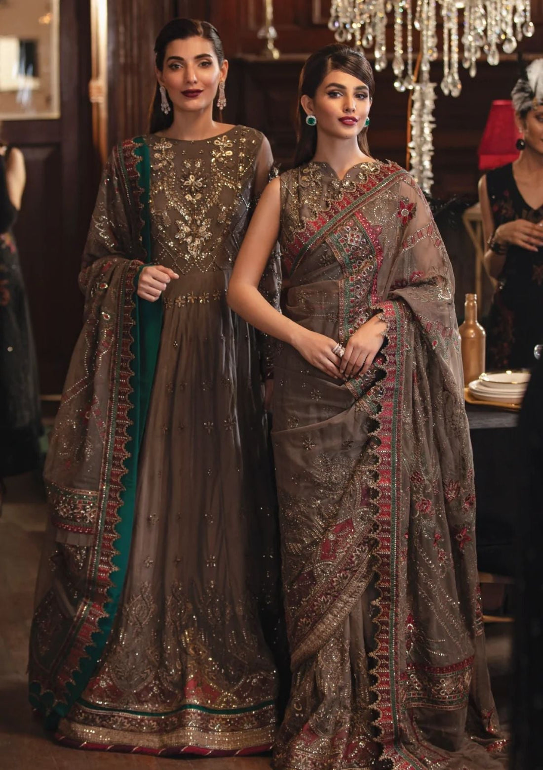 Description: Colour : Dusty Brown Frock Front: Embroidered Net (2.75 y) Frock Back: Embroidered Net...