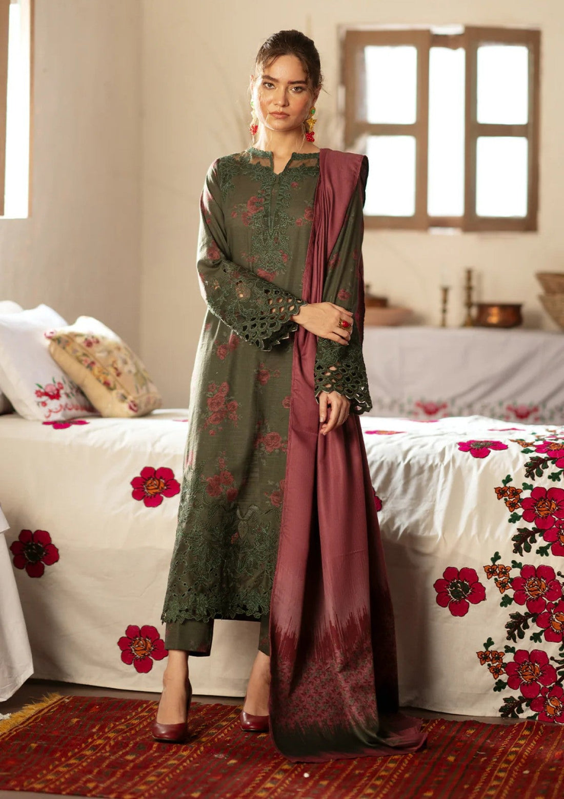 Outfit Type: Eastern Style: Long Shirt Color Type: Green Package Includes: 3 Piece Top ,...