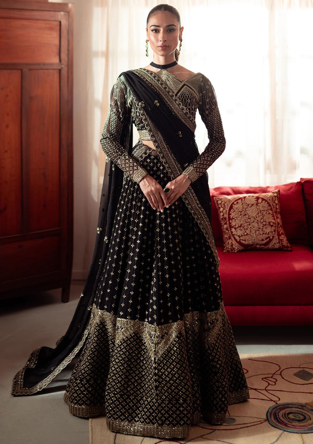 Outfit Type: Eastern Style: Lehenga Color Type: Black Package Includes: 3 Piece Top , Bottom...