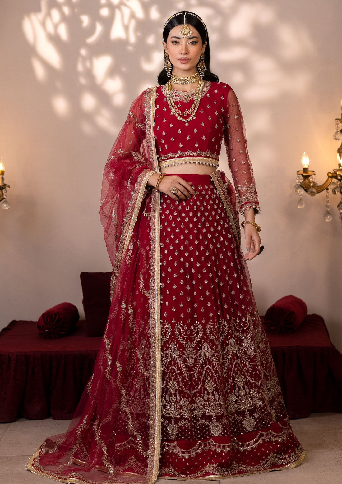 Outfit Type: Eastern Style: Lehenga Color Type: Red Package Includes: 3 Piece Top , Bottom...