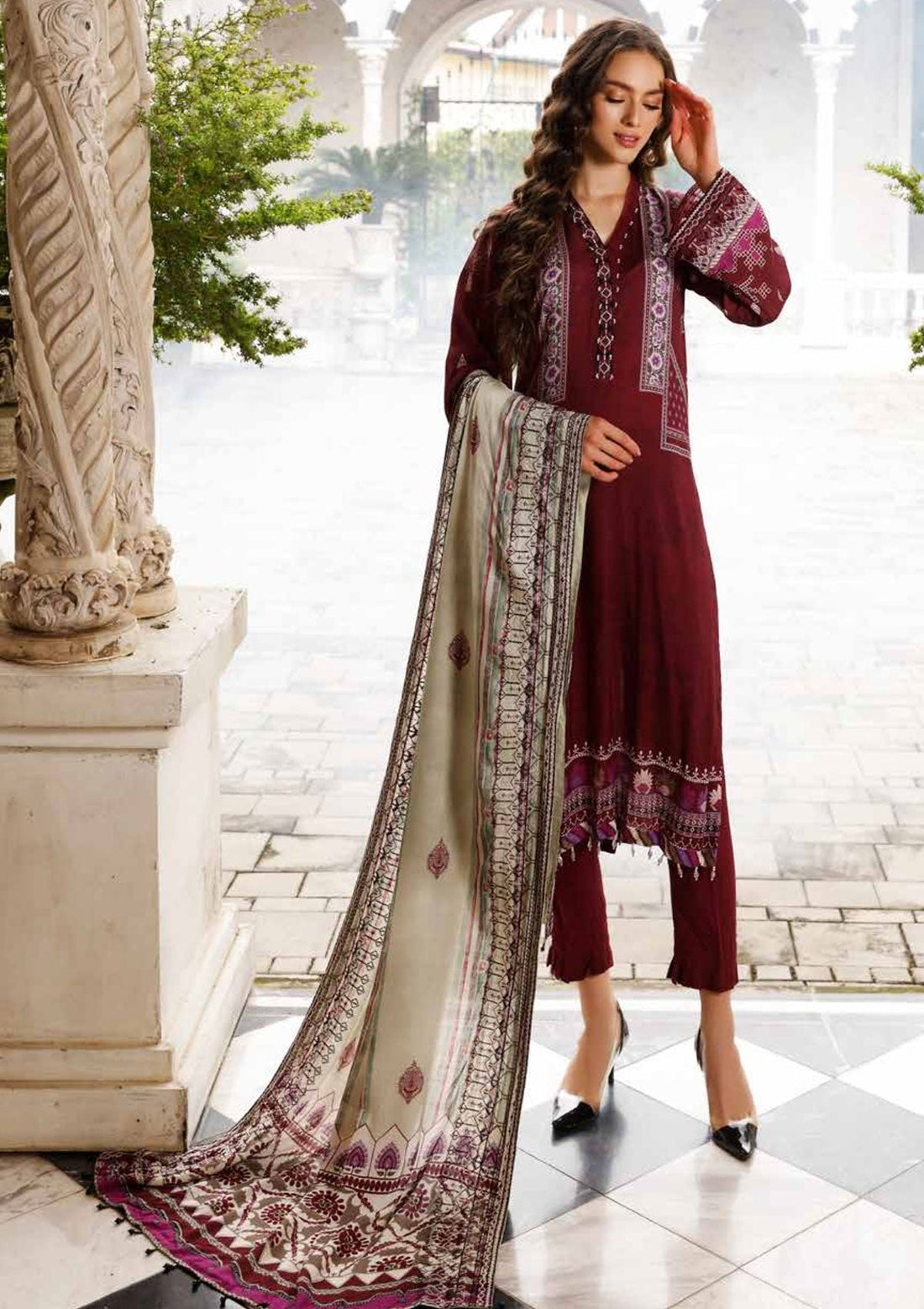 Description: Embroidered & Printed Slub Linen Shirt Embroidered & Printed Linen Shawl Dyed Linen Trouser...
