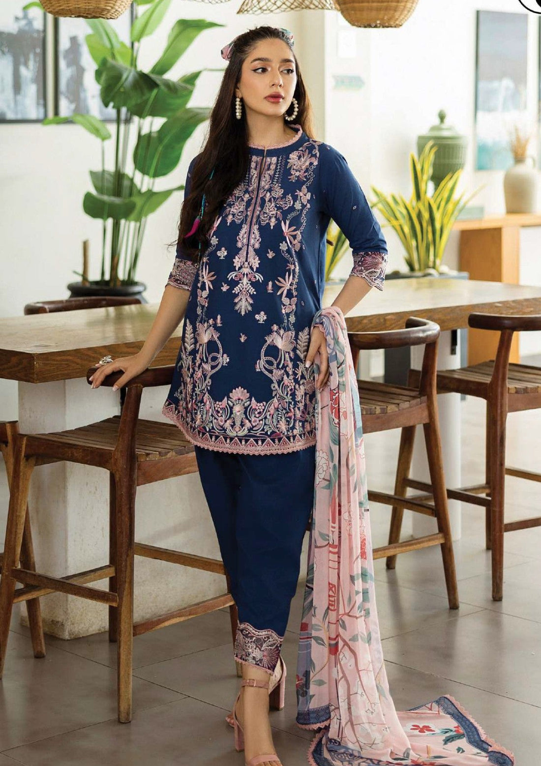 Outfit Type: Eastern Style: Long Shirt Color Type: Navy Blue Package Includes: 3 Piece Top...