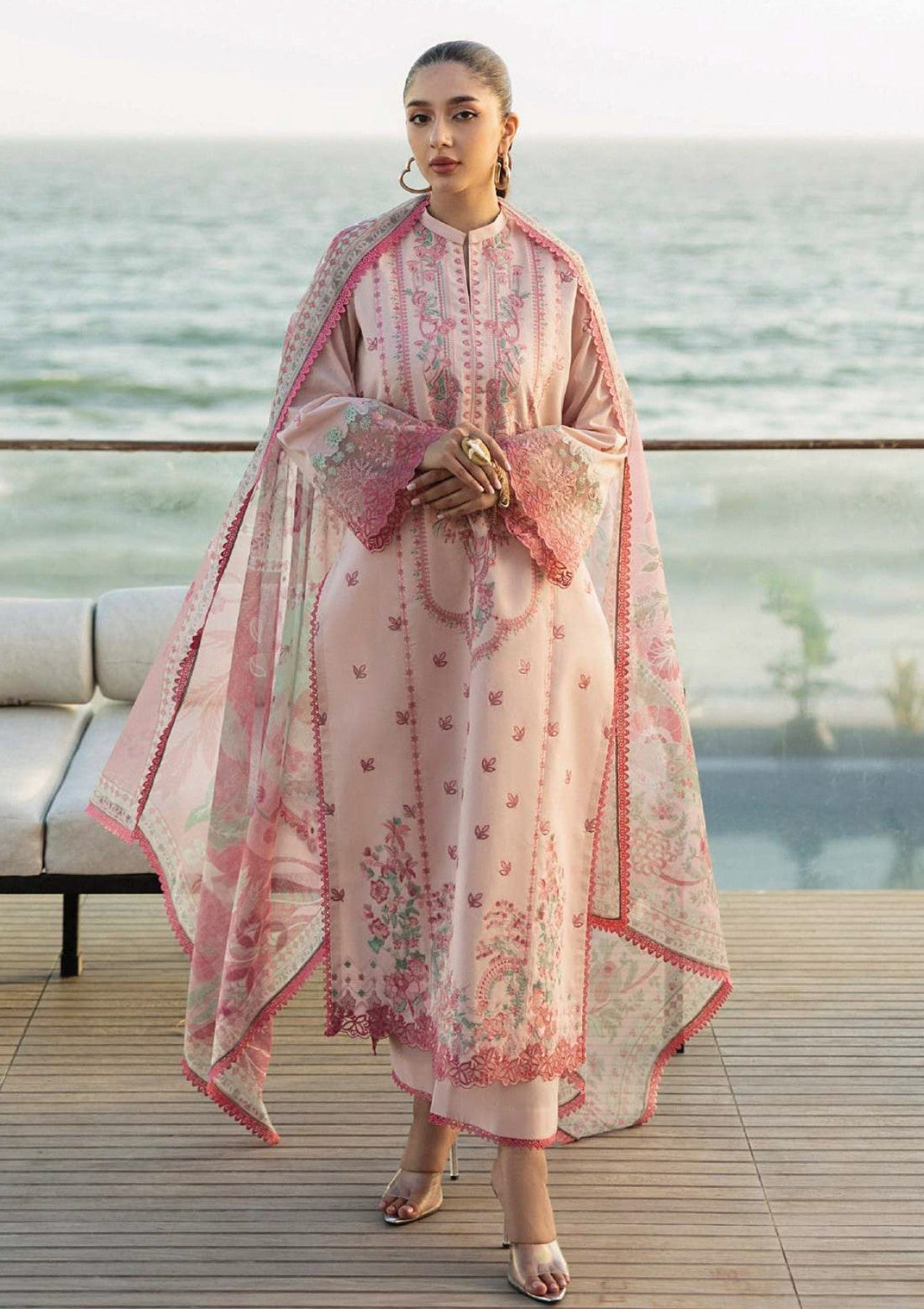 Outfit Type: Eastern Style: Long Shirt Color Type: Light Pink Package Includes: 3 Piece Top...
