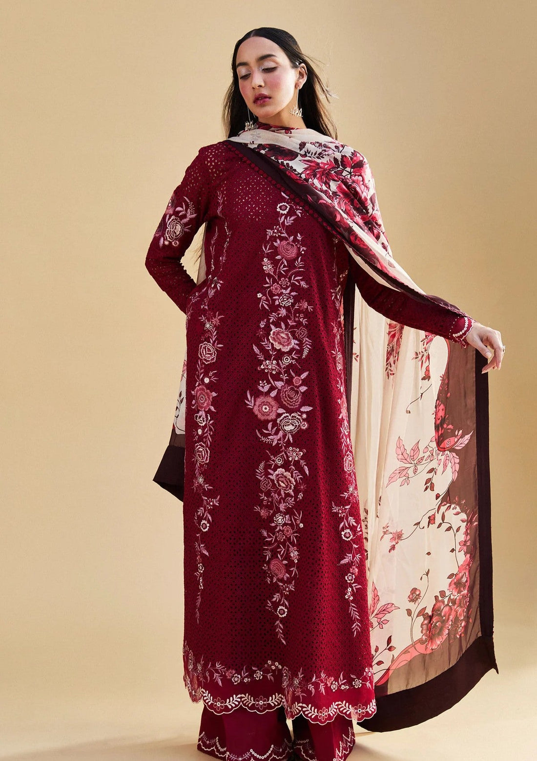 Outfit Type: Eastern Style: Long Shirt Color Type: Crimson Red Package Includes: 3 Piece Top...