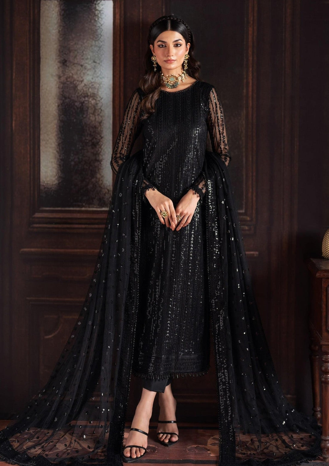 Outfit Type: Eastern Style: Long Shirt Color Type: Black Package Includes: 3 Piece Top ,...