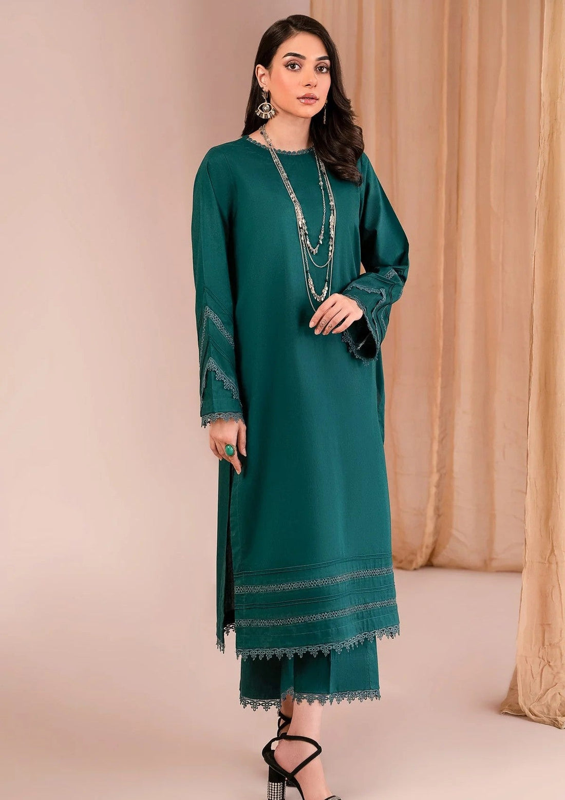 Outfit Type: Eastern Style: Long Shirt Package Includes: 3 Piece Top , Bottom & Dupatta...