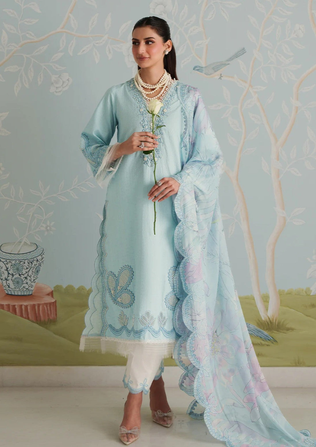 Outfit Type: Eastern Style: Long Shirt Color Type: Ice Blue Package Includes: 3 Piece Top...