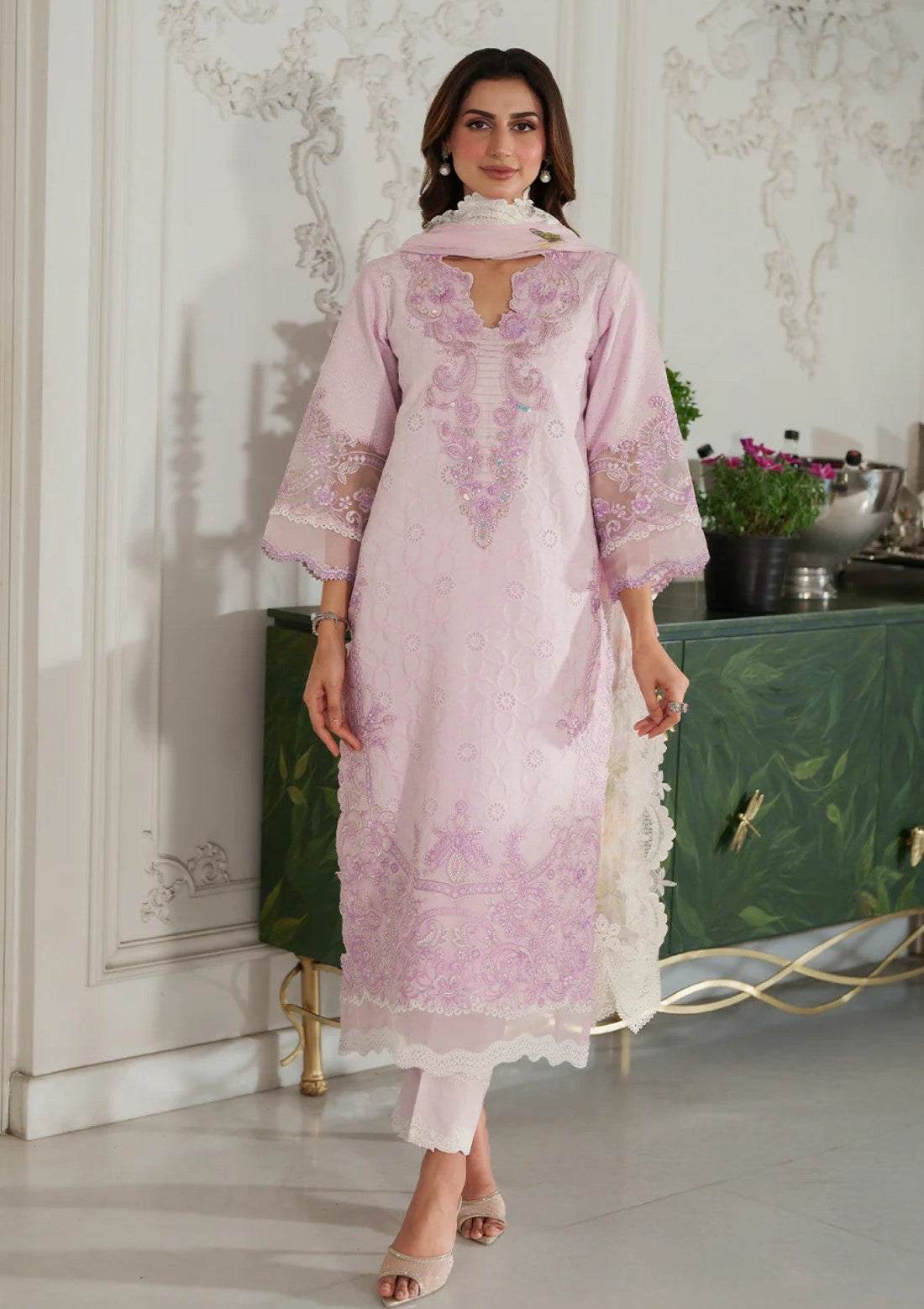 Outfit Type: Eastern Style: Long Shirt Color Type: Light Violet Package Includes: 3 Piece Top...