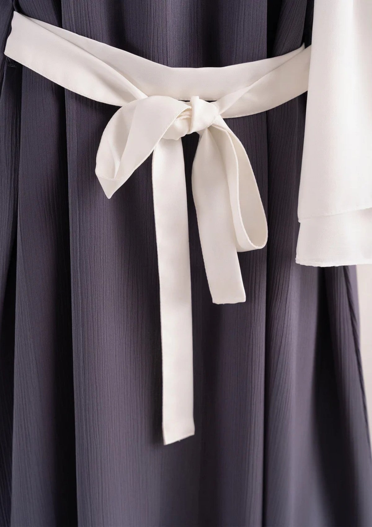 - Embrace sophistication with our grayish lavender print Zoom Nida abaya, featuring elegant stonework details and a graceful flow.