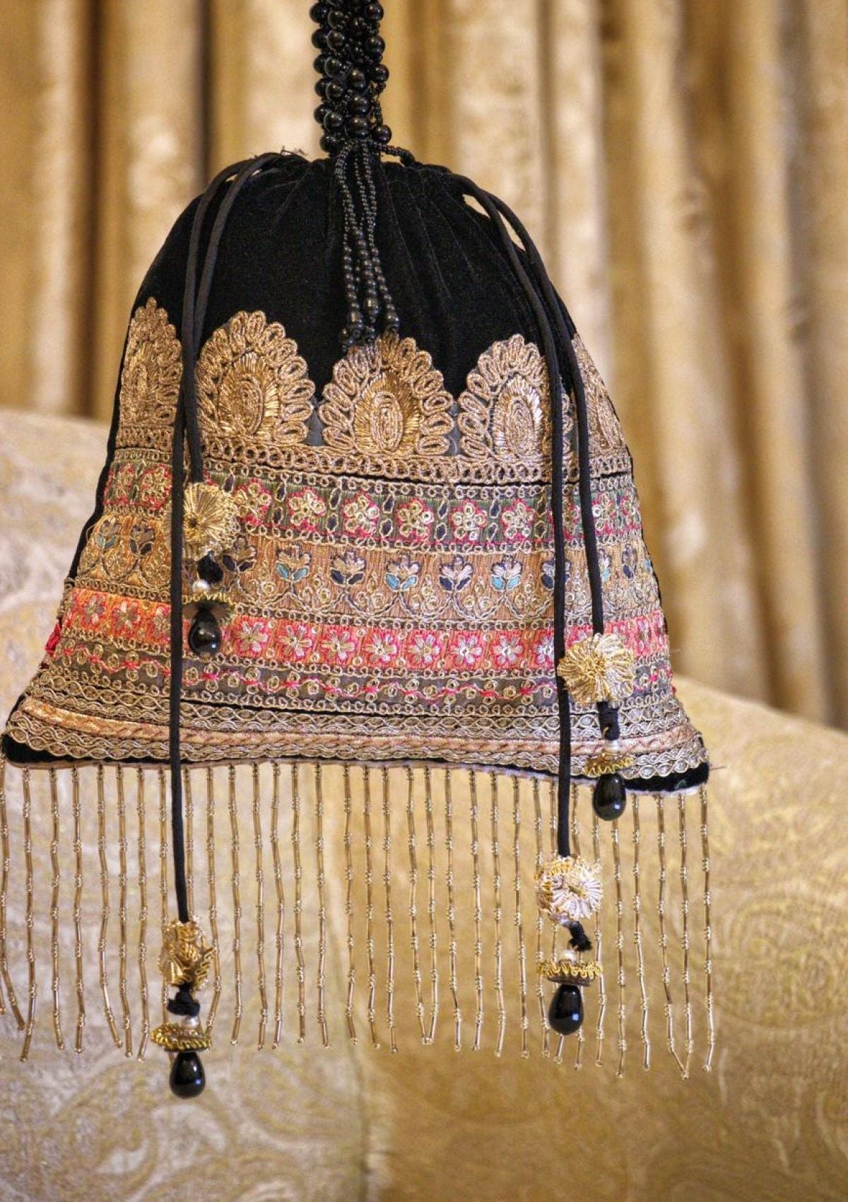 Bags Collection - Sadias Collection - Potli - D#07 Black Mehrab