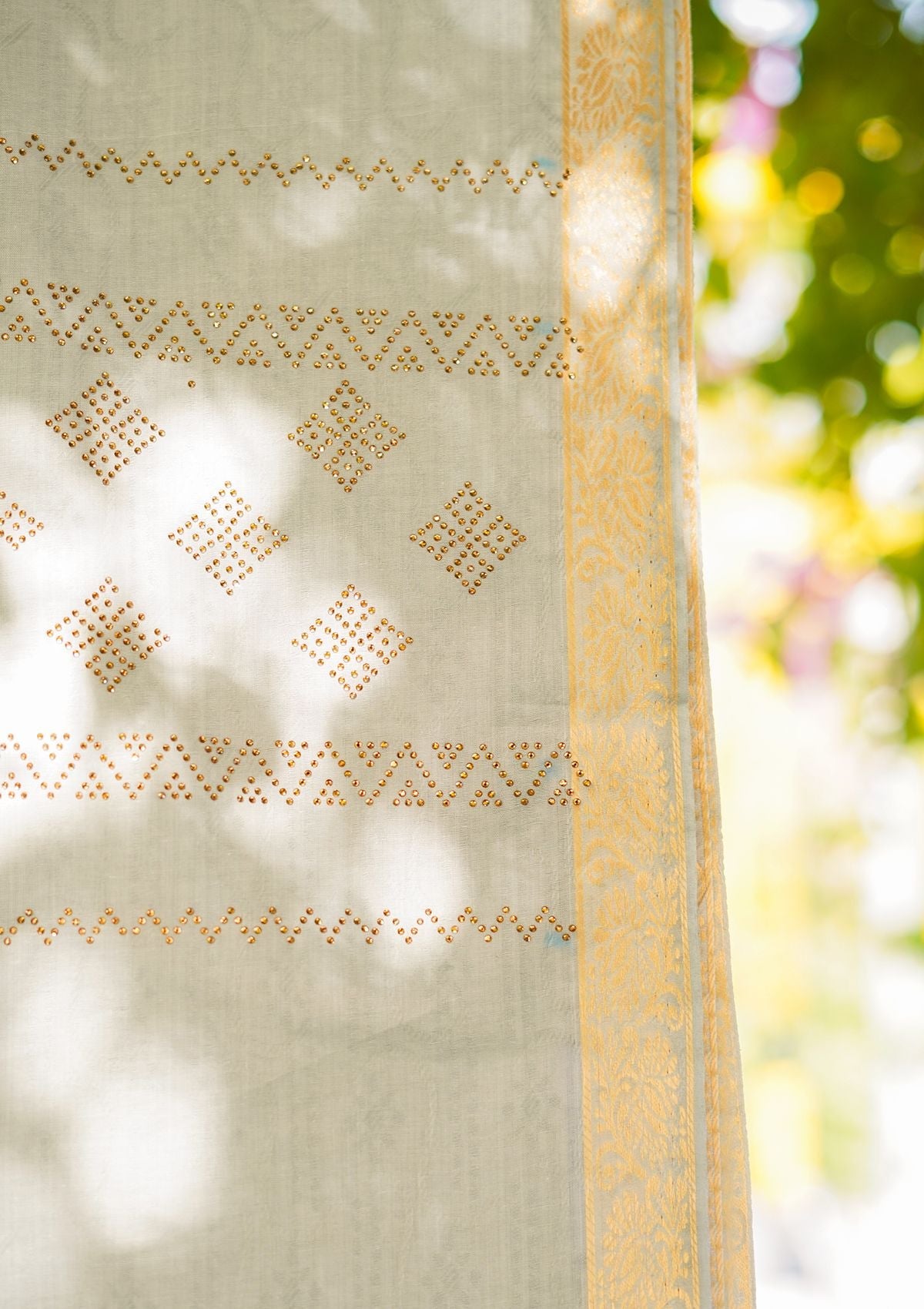 Broshia Stone Work Lawn Shawl D- 01 - Grey