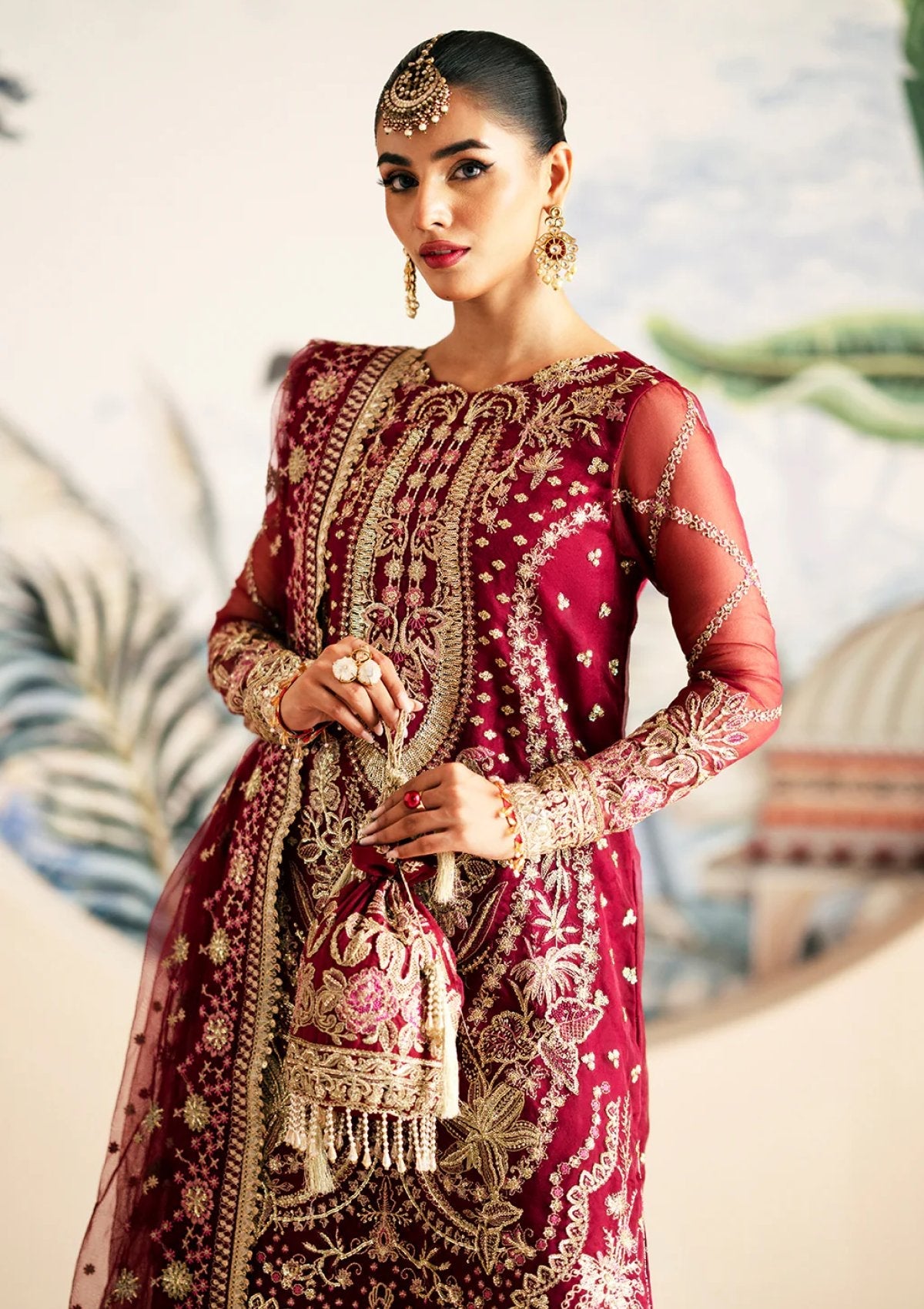 - Resham And Sequin Embroidered Organza Sleeves