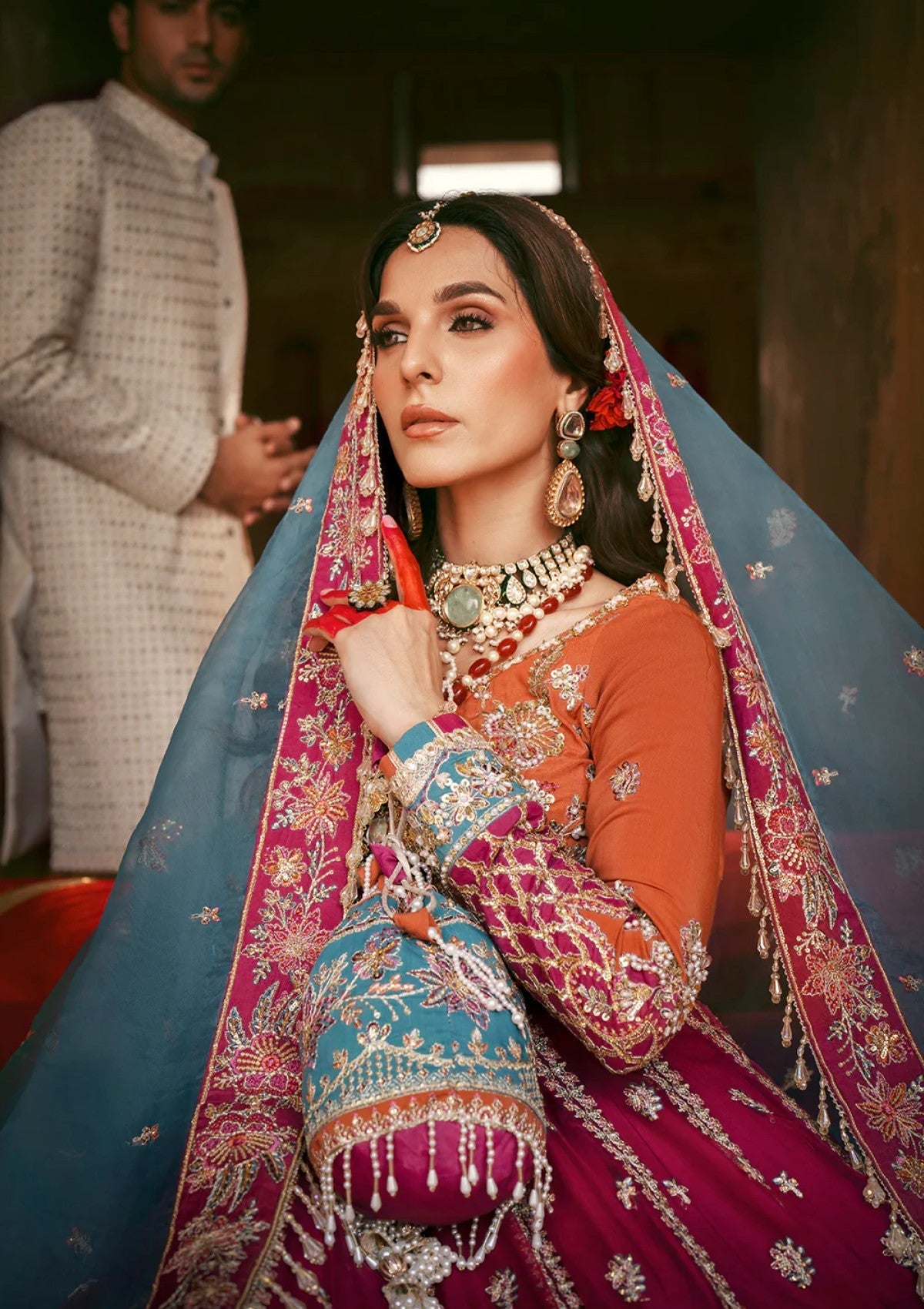 Adorned with hand-embellished Resham embroidery, the raw silk blouse is a testament to meticulous artistry. Each sleeve tells a story, embellished with delicate motifs and bordered by intricate silk threads. The piÃÂèce de rÃÂésistance? A breathtaking pishwas, fashioned from 12 masterfully embroidered panels, framed by twin borders that exude opulence. Paired with an organza dupatta, shimmering in Resham and sequin accents, and a flowing raw silk lehnga, *Regalia* transforms luxury into a living, breathing work of art. Draped in Regalia, you don't just wear eleganceâÃÂÃÂyou embody it.