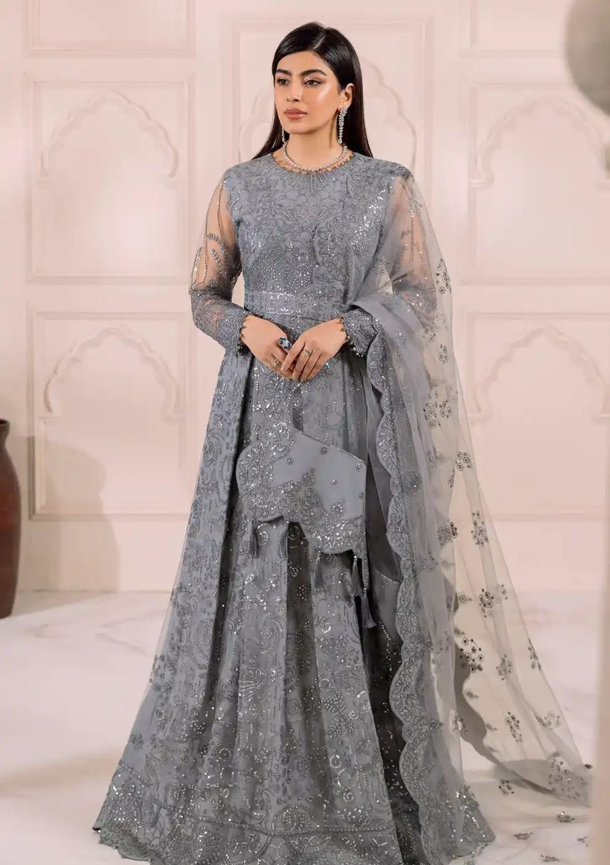 - Embroidered Net Dupatta