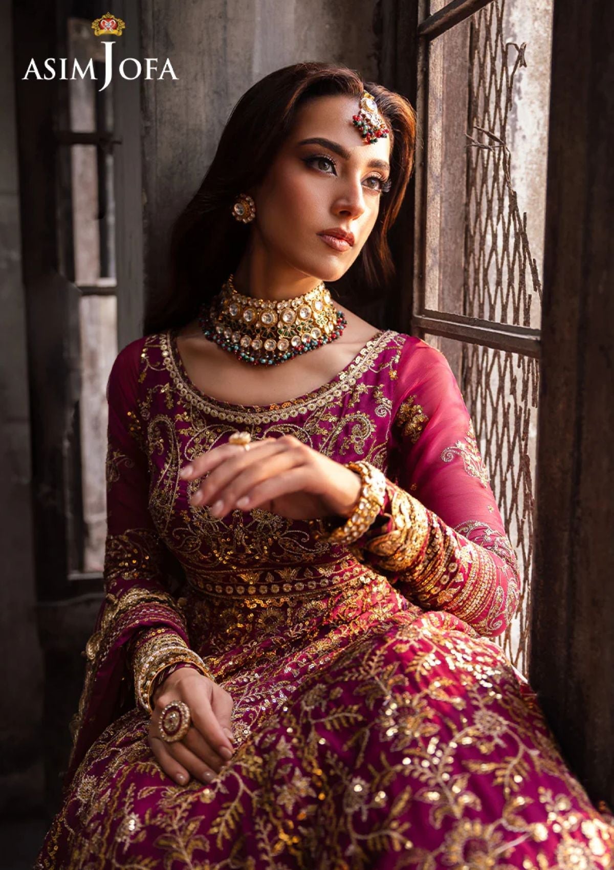 Drenched in the vibrant hue of magenta, this Peshwas radiates a bold and regal presence. Adorned with intricate antique gold zariwork that weaves a tapestry of elegance, it captures the essence of timeless beauty. The 3mm cupped sequins catch the light like tiny jewels, adding a playful sparkle that dances with every movement. This enchanting ensemble is paired with an embroidered dupatta, evoking the grandeur of a royal celebration, making this outfit a striking statement that commands attention.