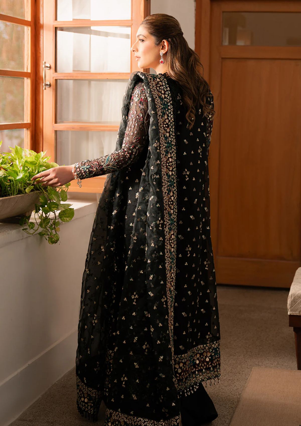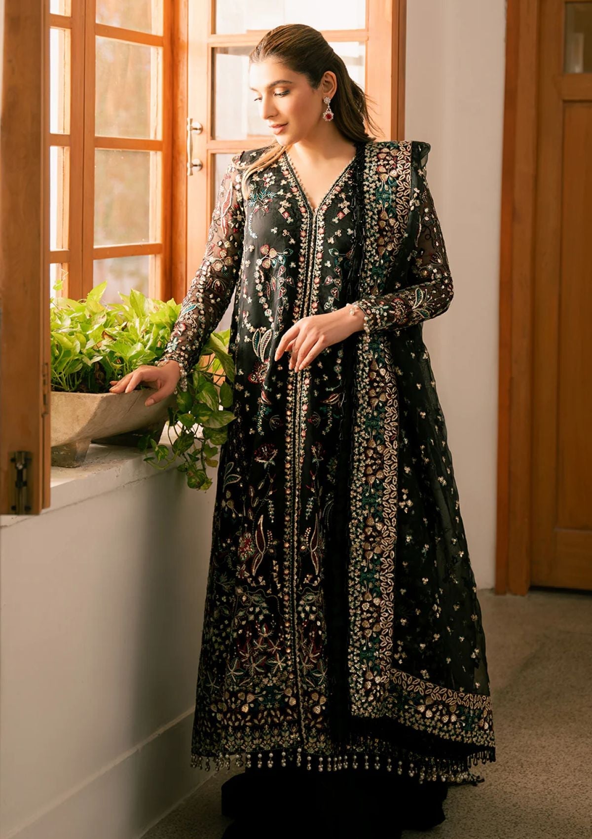- ORGANZA EMBROIDERED FRONT+BACK+SLEEVES BORDER (3.95 M)