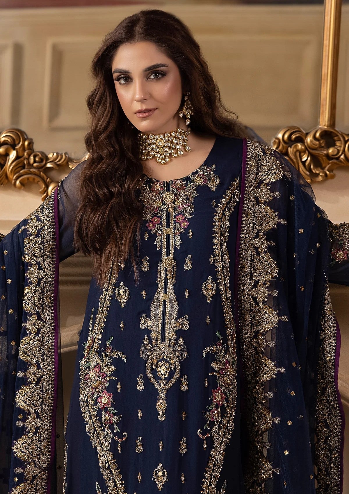 - Embroidered +Adda Work Dyed Chiffon sleeves 26 inches